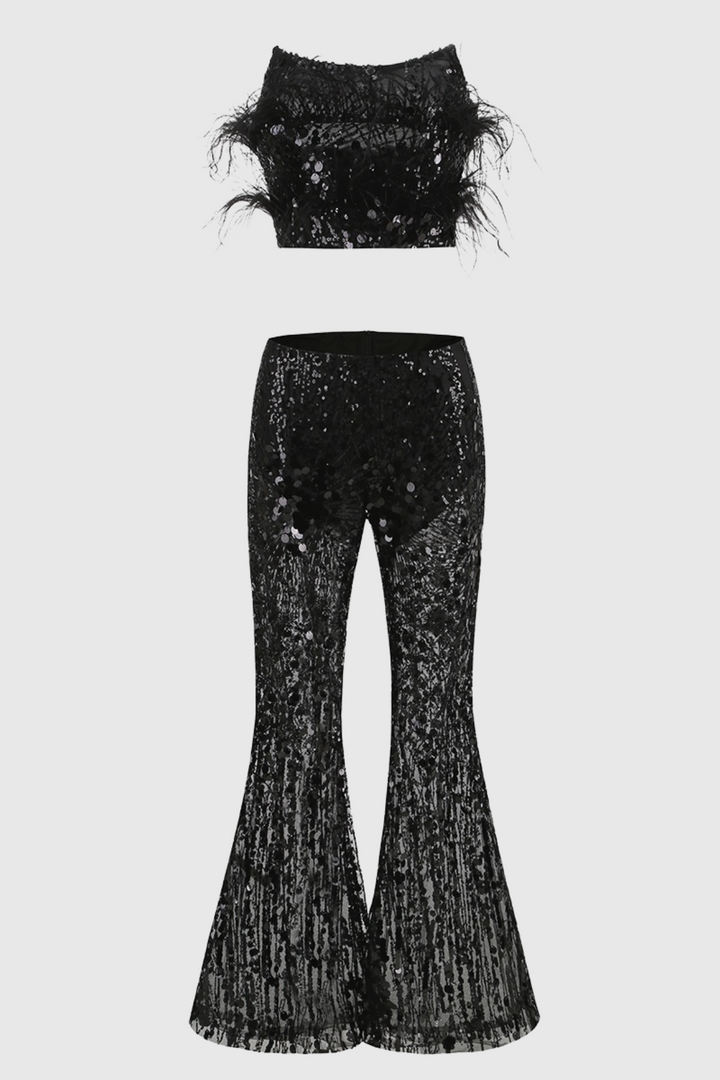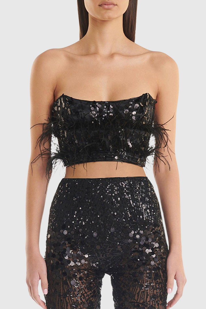 Eleri Feather Sequin Corset Two Piece Set