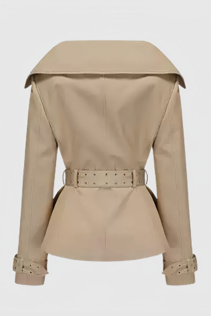 The Ellina Double Breasted Short Trench combines timeless tailoring with contemporary silhouette. Crafted with precision, this piece features classic double-breasted buttons and a refined collar that elevates any ensemble. The shortened length offers versatility—wear it over dresses, trousers, or casual separates for an effortlessly polished look. Perfect for transitional seasons, this trench delivers structured elegance without sacrificing comfort. An investment piece that transcends trends and seasons.