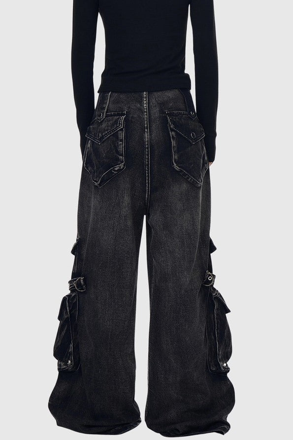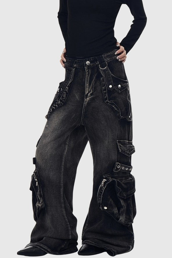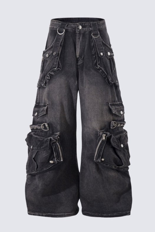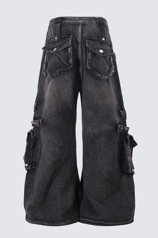 Elysia Cargo Jeans in classic black combine utilitarian design with refined tailoring. Multiple cargo pockets provide practical storage without compromising the sleek silhouette, while premium denim construction ensures durability and comfort. The versatile black wash pairs effortlessly with any wardrobe, transitioning seamlessly from casual weekends to elevated everyday wear. A modern take on functional style.