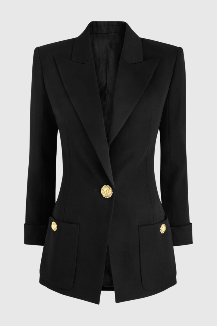 The Erkin Peak Lapel Blazer commands attention with its sharp, structured silhouette and refined tailoring. Crafted for the discerning professional, this blazer features distinctive peak lapels that elevate any ensemble with timeless elegance. The impeccable construction and polished finish make it an essential layer for boardrooms, formal events, and occasions demanding understated sophistication. Versatile enough to pair with tailored trousers or contemporary separates, this piece transforms your wardrobe into a statement of refined taste and confidence.