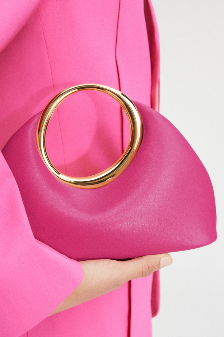 Elevate your evening with the Esme Circle Leather Clutch, a refined accessory that seamlessly transitions from cocktail hour to late-night affairs. Crafted from supple leather, this structured clutch features a distinctive circular silhouette that commands attention while maintaining understated elegance. The compact design fits essentials with ease, while the polished hardware and clean lines reflect timeless sophistication. Perfect for the discerning individual who values quality craftsmanship and distinctive style.