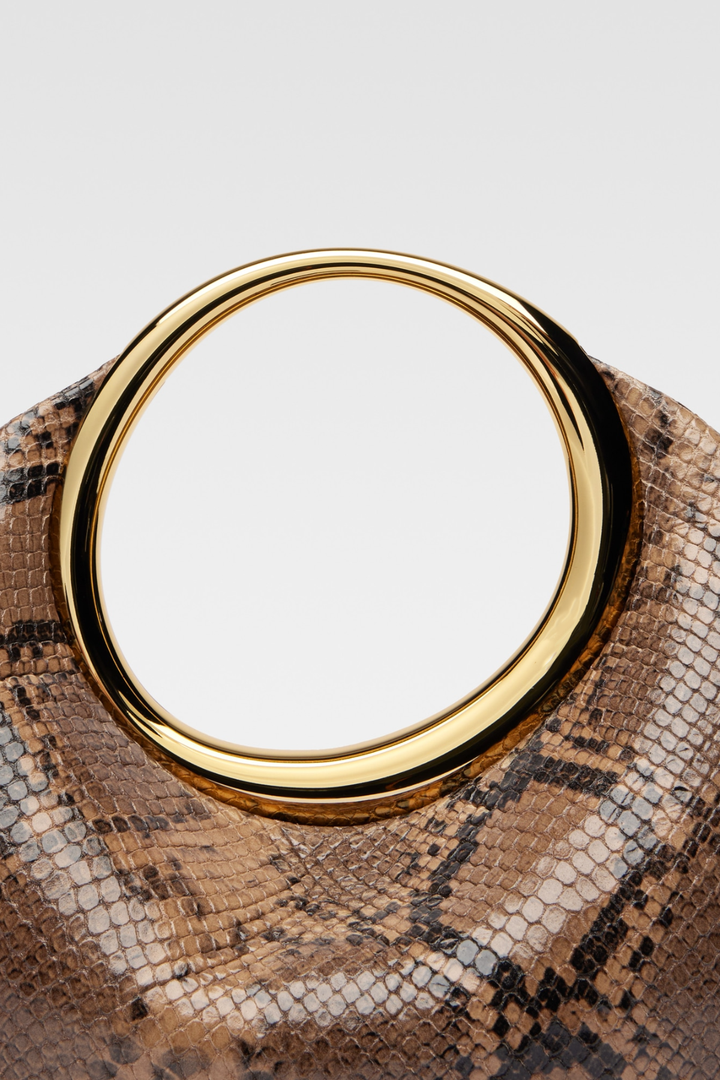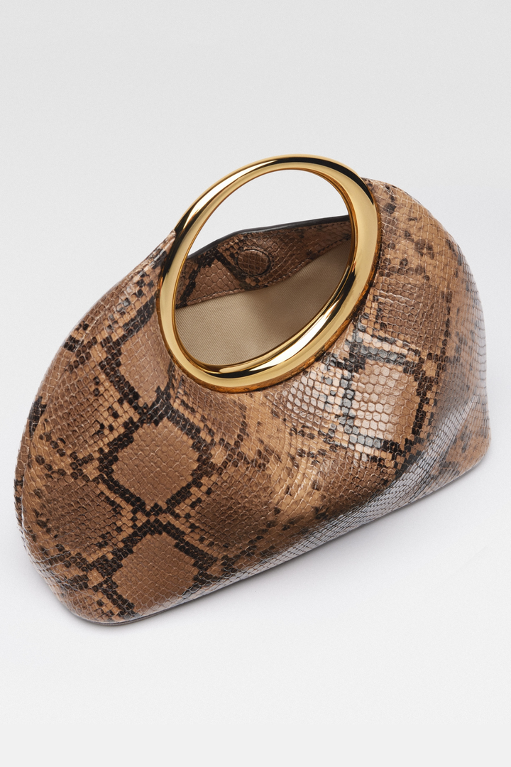 Elevate your evening with the Esme Circle Leather Clutch, a refined accessory that seamlessly transitions from cocktail hour to late-night affairs. Crafted from supple leather, this structured clutch features a distinctive circular silhouette that commands attention while maintaining understated elegance. The compact design fits essentials with ease, while the polished hardware and clean lines reflect timeless sophistication. Perfect for the discerning individual who values quality craftsmanship and distinctive style.