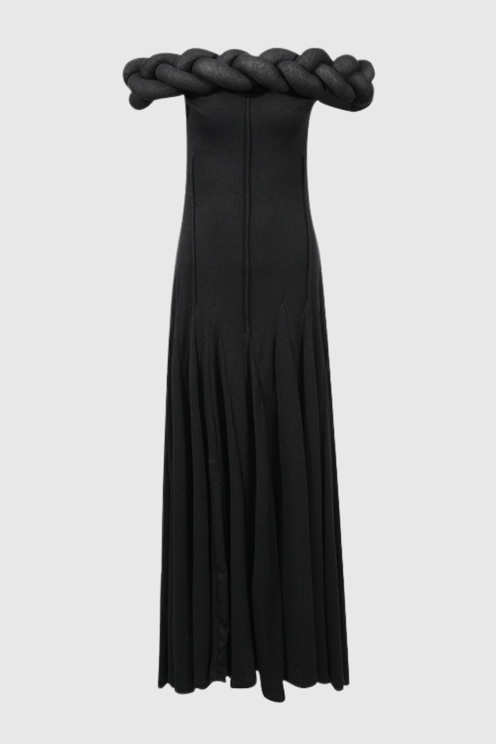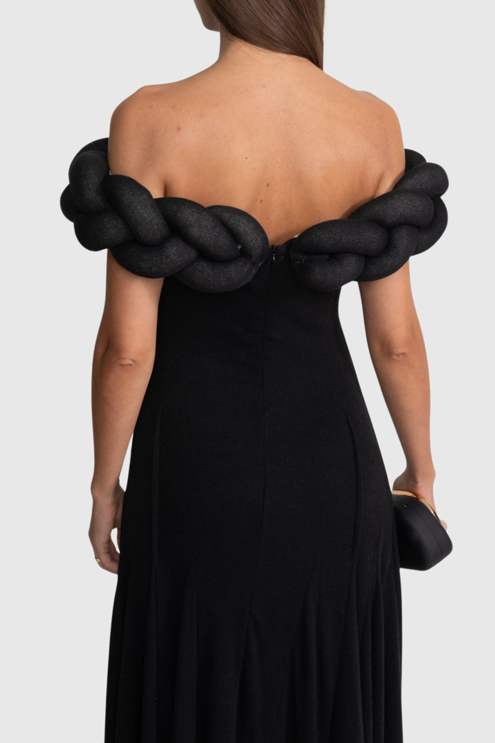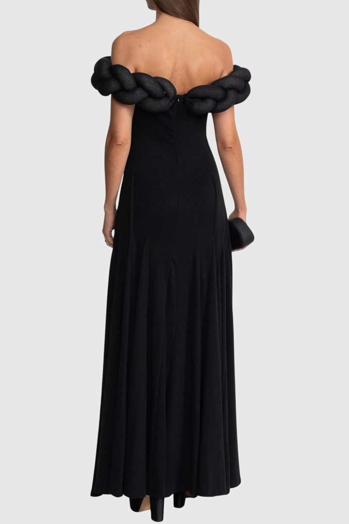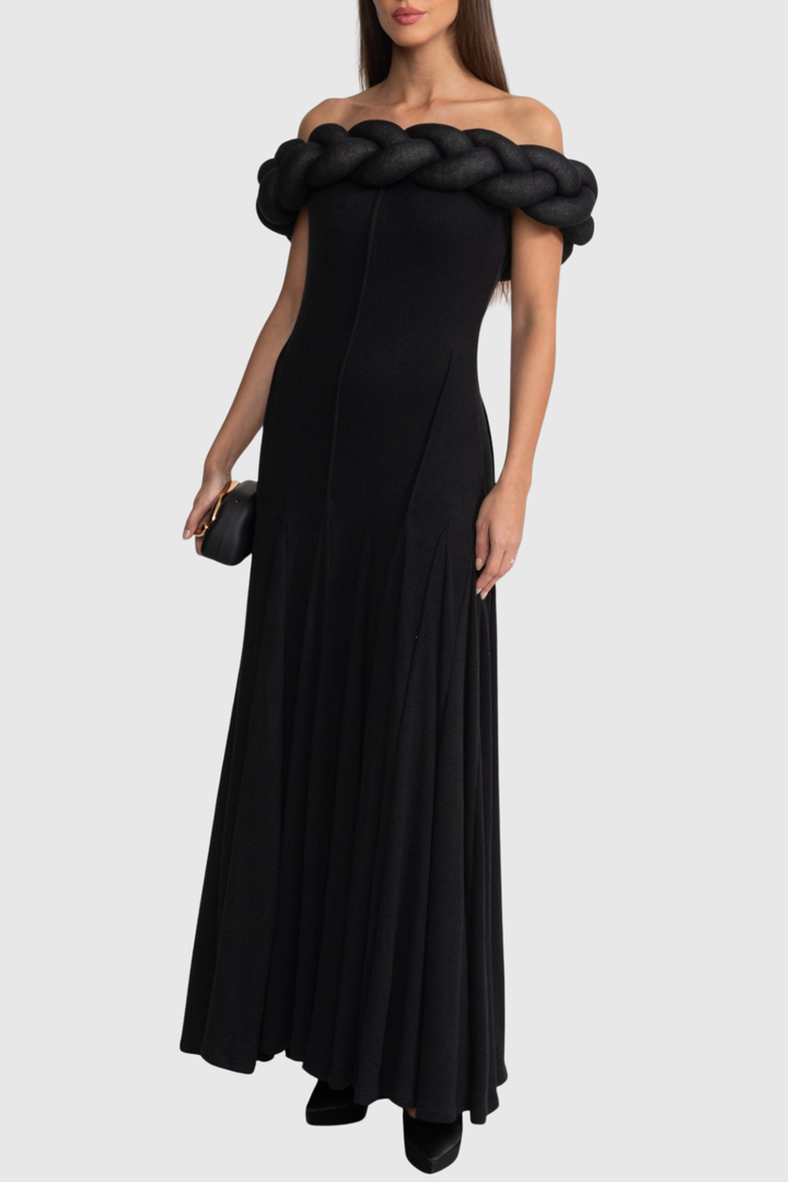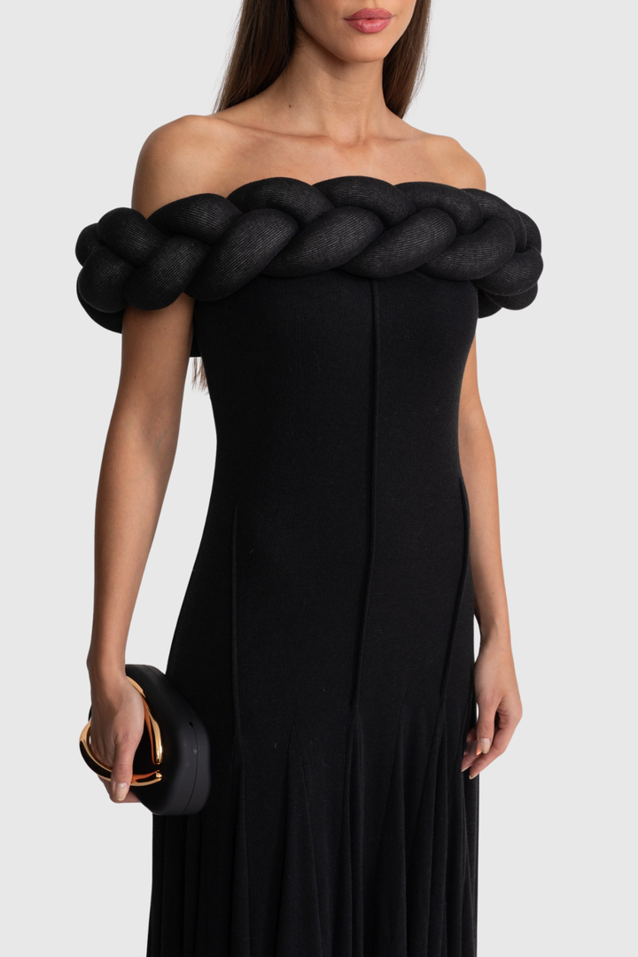 Esmere Off Shoulder Braid Knit Maxi Dress - Black