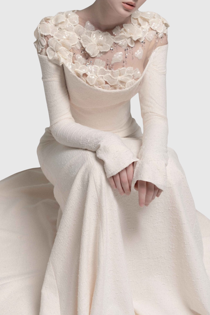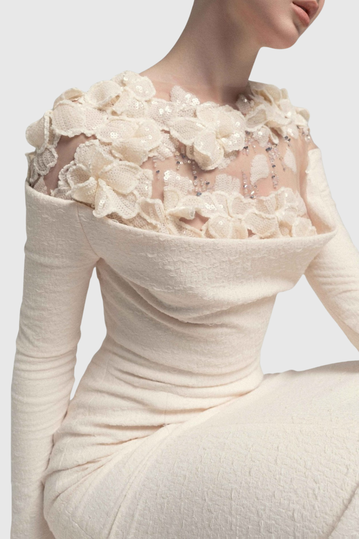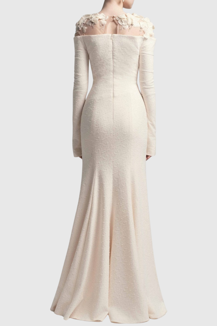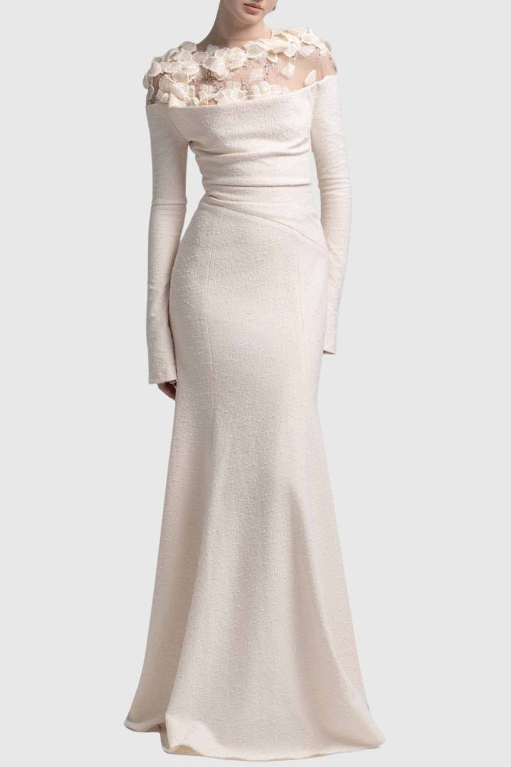 Estha Floral Embellished Draped Maxi Dress - Beige