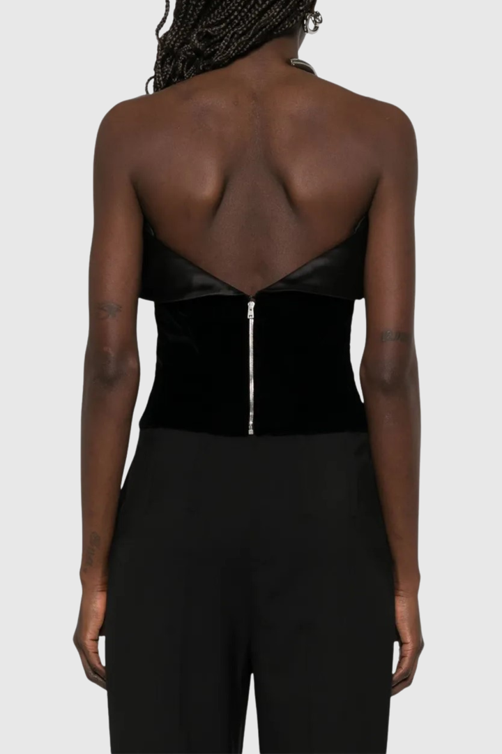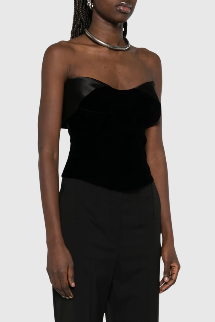 Elevate your wardrobe with the Evian Velvet Corset Top, a refined piece that seamlessly blends timeless elegance with contemporary style. Crafted from luxurious velvet fabric, this corset-inspired top features structured boning that creates a flattering silhouette while providing gentle support. The sophisticated design works beautifully for evening occasions, special events, or when you want to make a polished statement. Perfect layered under blazers or worn as a standalone piece, this versatile top brings an air of understated luxury to any ensemble.
