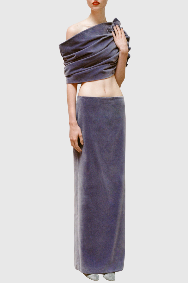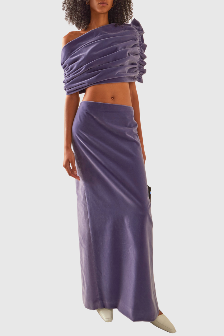 Fella Velvet Ruched Top & Maxi Skirt Set