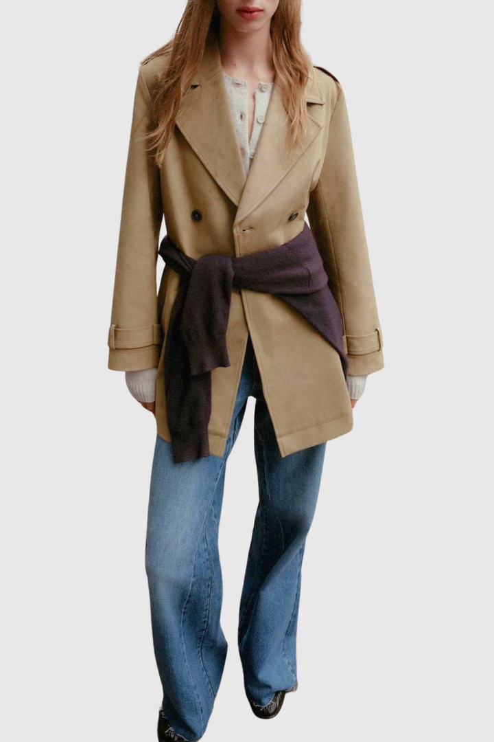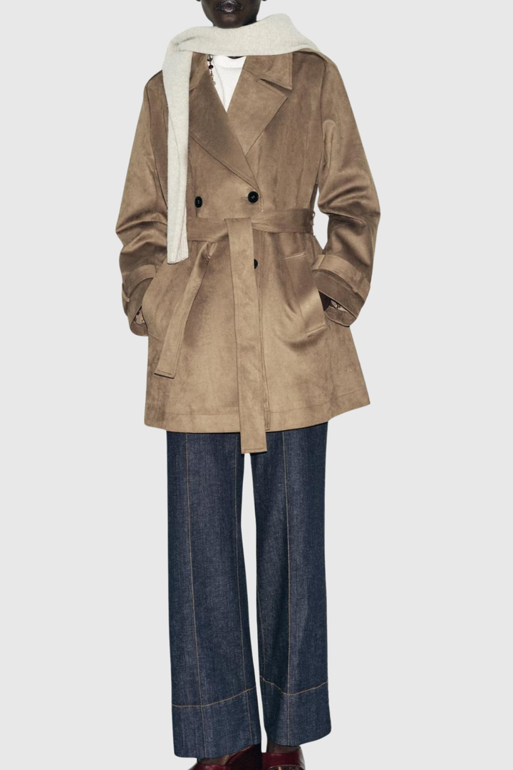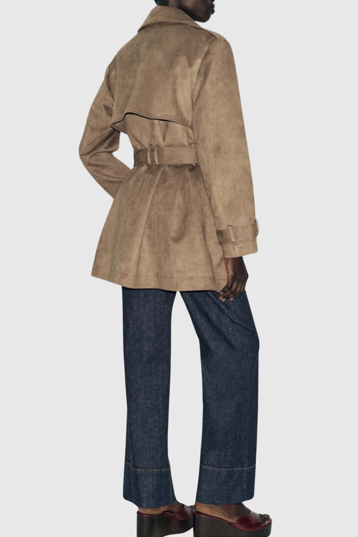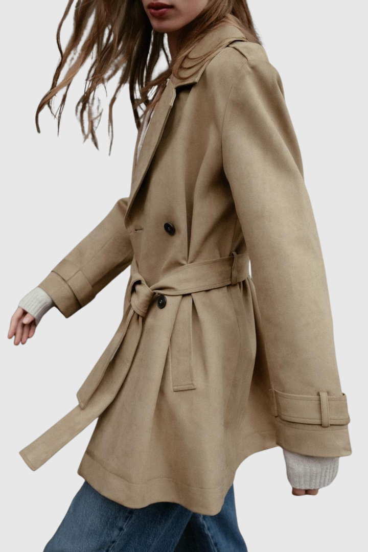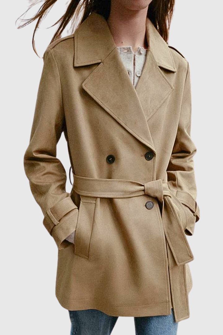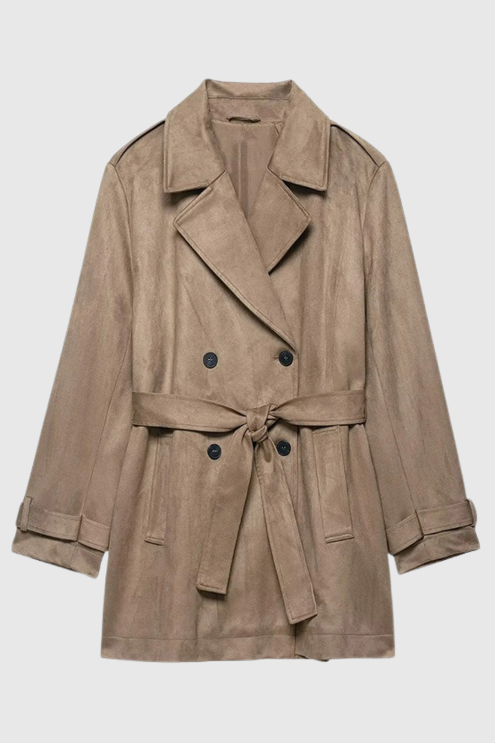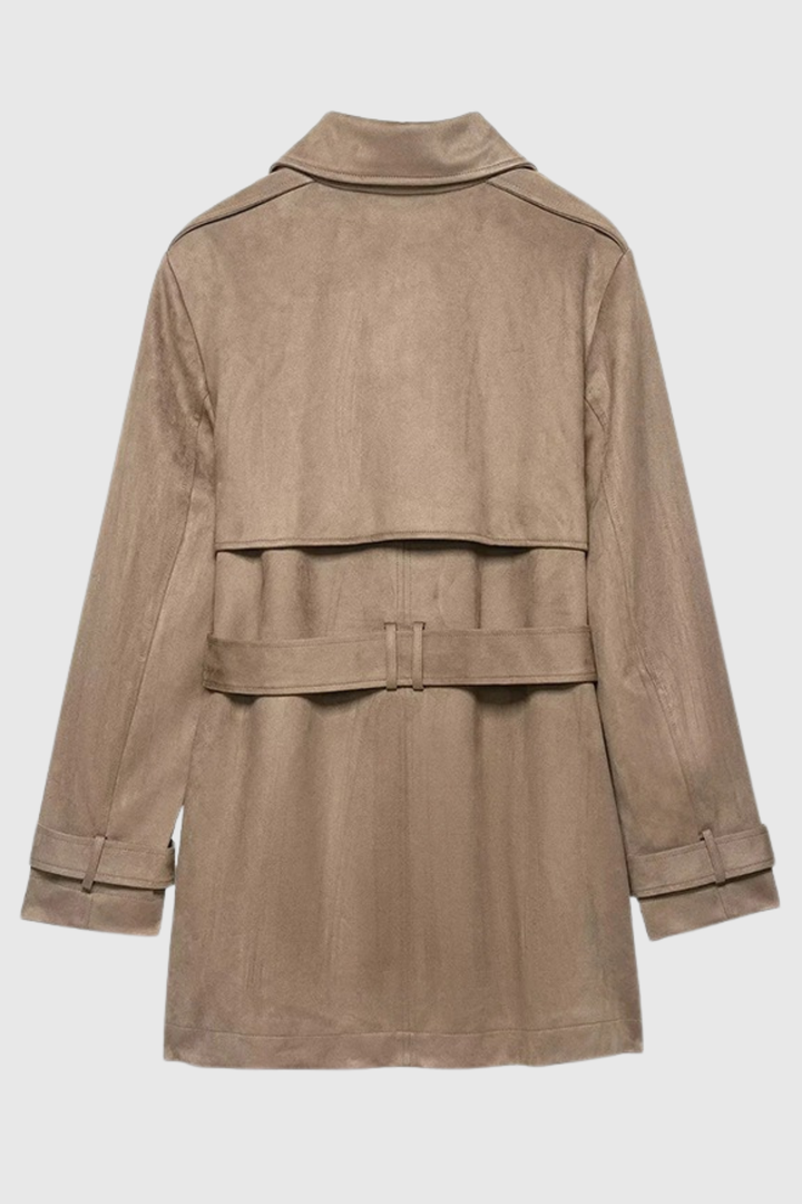 Elevate your wardrobe with the Finara Suded Trench, a timeless outerwear essential that seamlessly transitions from boardroom to weekend. Crafted from luxuriously soft suede, this sophisticated silhouette features a classic trench cut with refined tailoring that flatters every frame. The rich texture and neutral palette make it an effortless layering piece that pairs beautifully with everything from tailored separates to casual denim. Perfect for those who appreciate understated elegance and enduring style.
