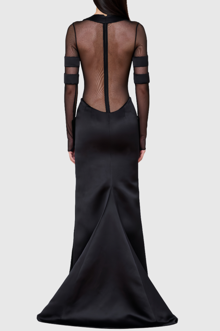 Elevate your evening wardrobe with the Galilea Mesh Maxi Dress, a sophisticated piece that seamlessly blends elegance with contemporary style. Crafted from delicate mesh fabric, this floor-length silhouette offers an ethereal quality while maintaining refined structure. The flowing design creates graceful movement with every step, making it an ideal choice for formal events, galas, or upscale occasions. Layer it over a slip dress for added dimension, or wear it as a statement piece on its own. Perfect for those who appreciate understated luxury and timeless appeal.