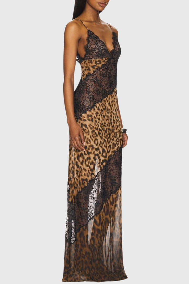 Elevate your wardrobe with the Gannan Lace Leopard Maxi Dress, a refined blend of bold leopard print and delicate lace detailing. This maxi dress offers a graceful silhouette that flatters every curve, combining timeless elegance with a modern edge. Perfect for evening events or special occasions, its sophisticated design ensures you stand out with effortless confidence and style.