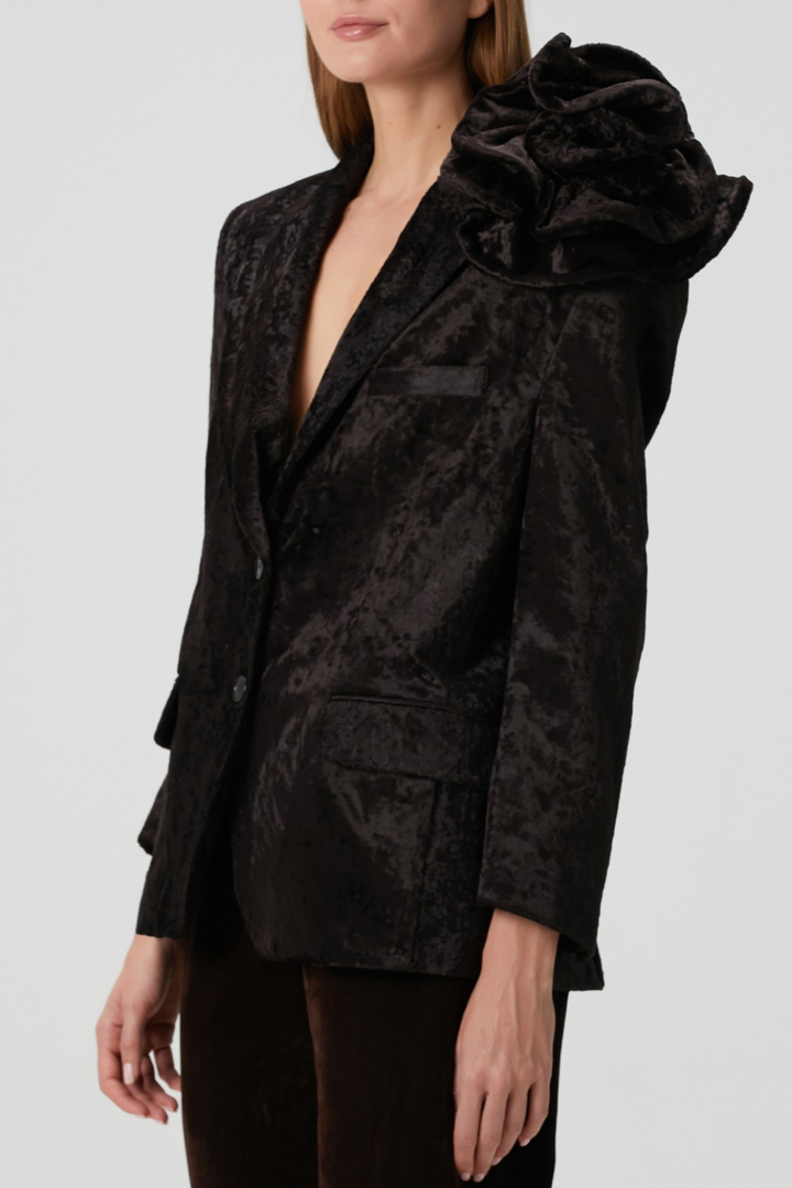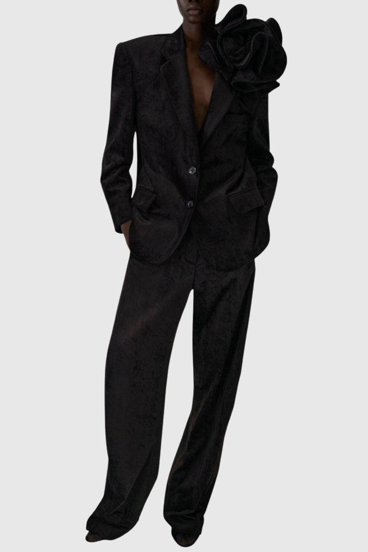 Elevate your wardrobe with the Habib Floral Appliqué Velvet Blazer, a refined piece that seamlessly blends luxury and artistry. Crafted from sumptuous velvet, this blazer features exquisite floral appliqués that add dimensional elegance to any ensemble. The tailored silhouette ensures a polished fit, making it perfect for upscale events, professional settings, or elevated casual occasions. Pair it with tailored trousers or a sleek dress to showcase its distinctive design. A timeless investment piece that transforms your look with understated sophistication.
