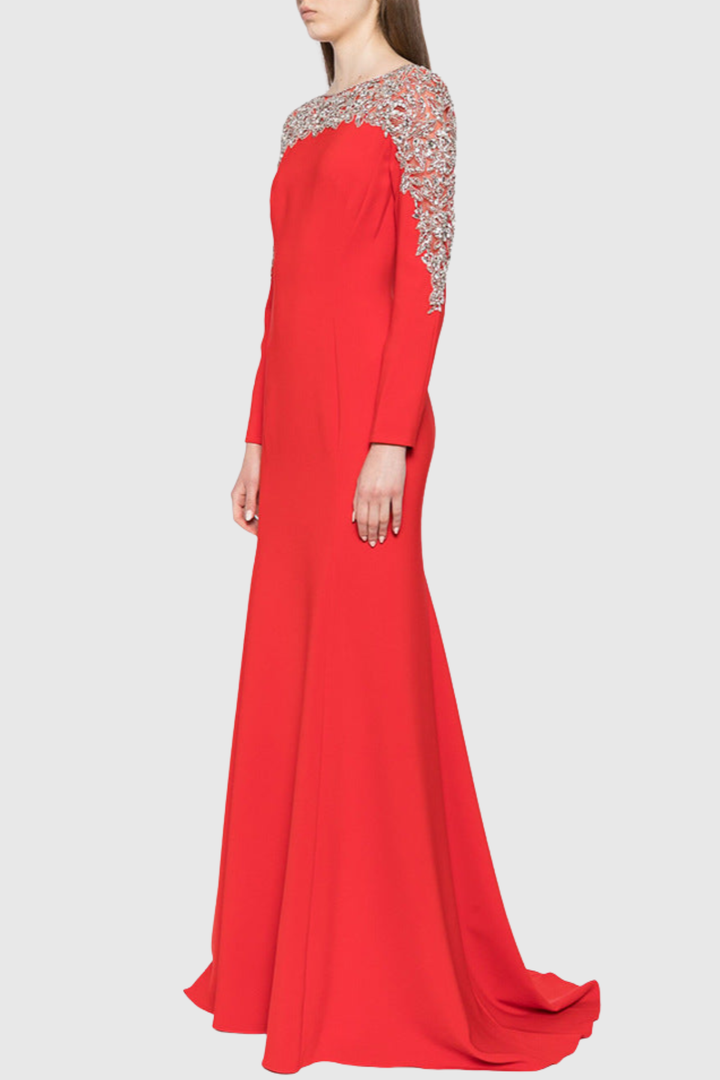 Elevate your evening wardrobe with the Hassan Crystal Embellished Maxi Dress, a stunning statement piece that captures light and attention in equal measure. Intricate crystal embellishments cascade across the silhouette, creating an enchanting shimmer with every movement. The flowing maxi length offers timeless elegance and graceful drape, making it ideal for galas, weddings, and formal celebrations. Crafted with refined sophistication, this dress combines luxurious detailing with wearable comfort, ensuring you feel as radiant as you look.