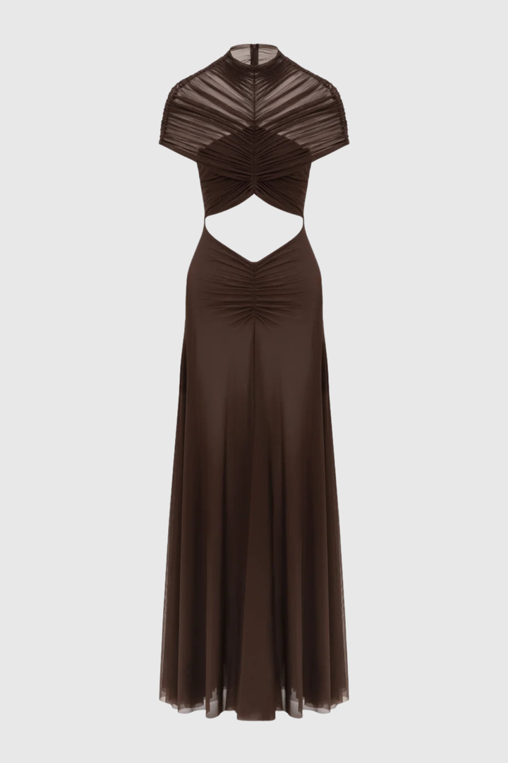 Iareda Mesh Ruched Cutout Maxi Dress - Chocolate