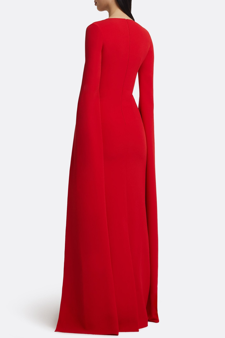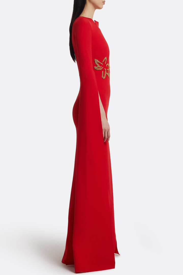 Elevate your evening wardrobe with this stunning Ibena maxi dress, where timeless elegance meets contemporary design. The intricate floral embroidery adorns the bodice, creating a captivating focal point, while the dramatic cape sleeves add an air of refined sophistication. The flowing maxi silhouette skims gracefully to the floor, offering both comfort and glamour. Perfect for formal events, galas, or upscale celebrations, this dress makes a memorable statement with its exquisite craftsmanship and graceful proportions.