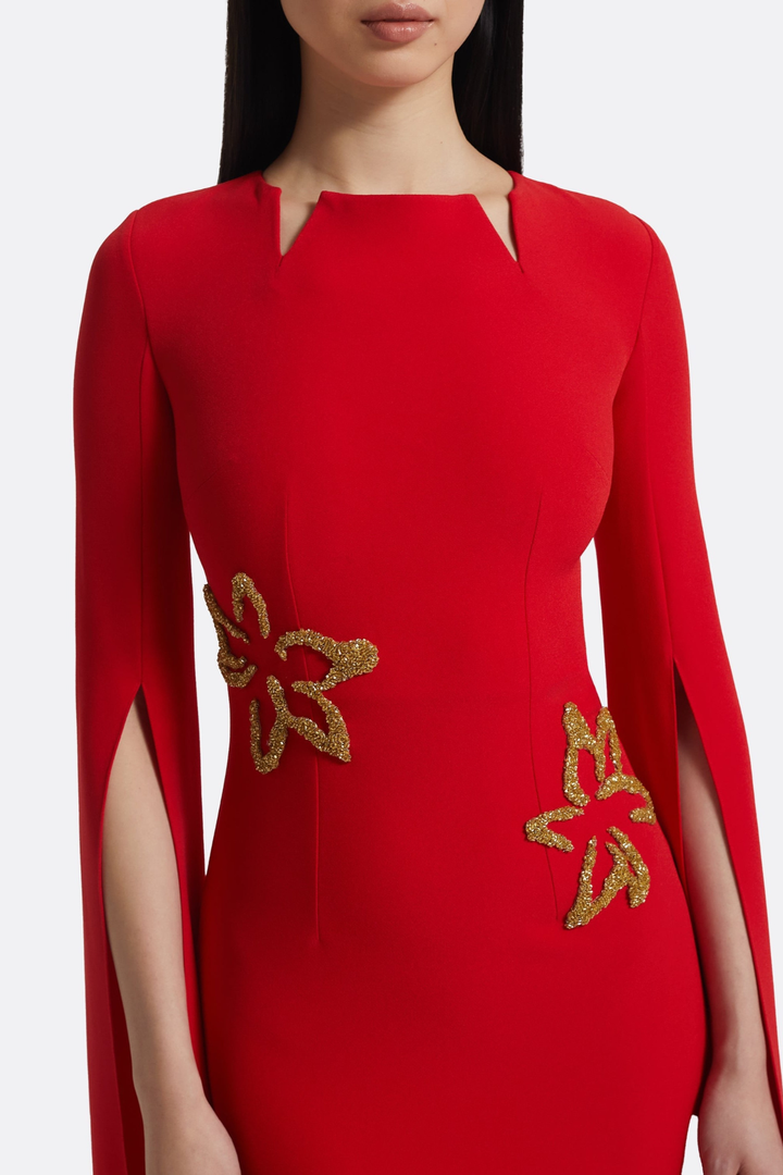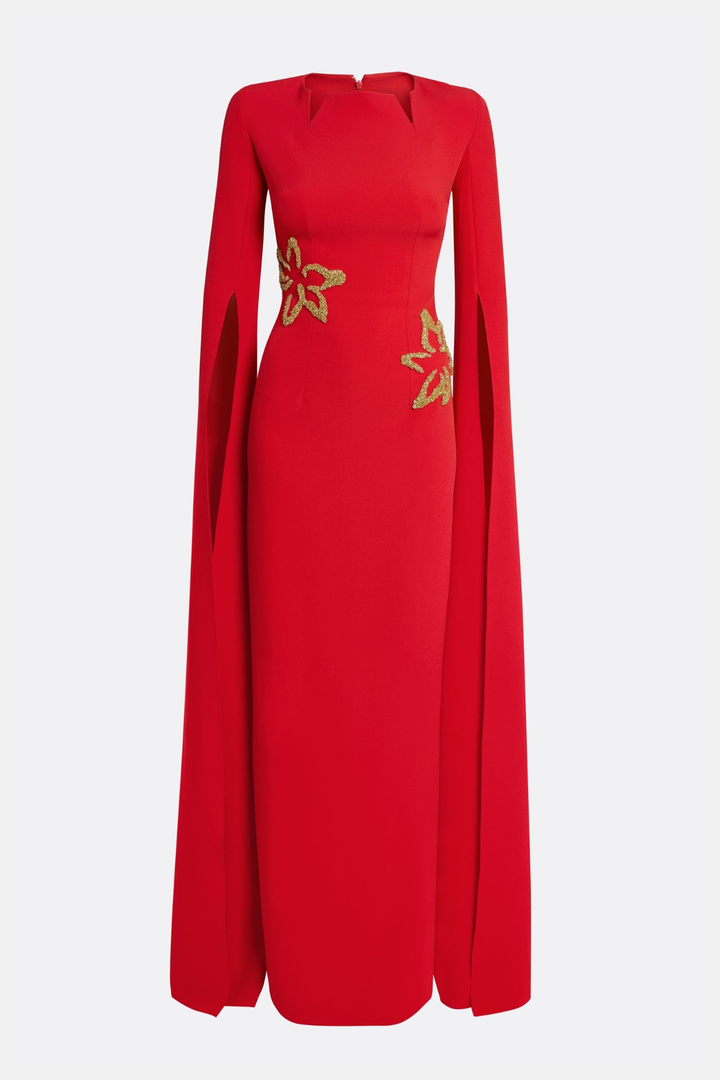 Ibena Floral Embroidered Cape Sleeve Maxi Dress