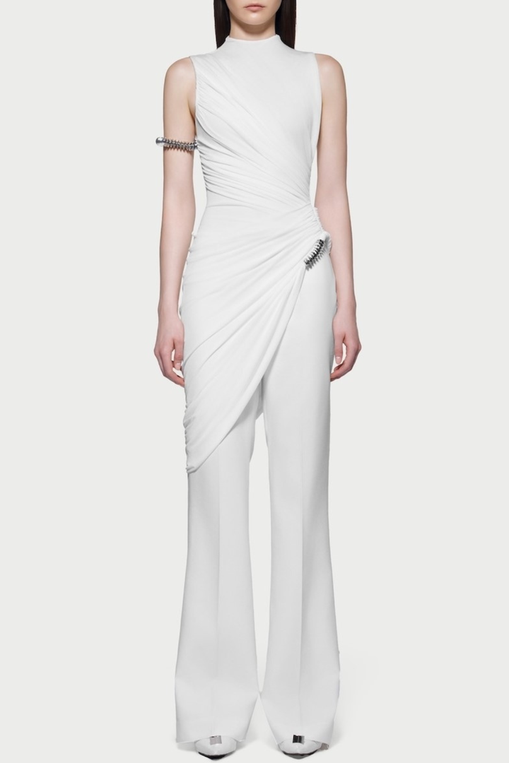 The Irma Asymmetric Ruched Top combines contemporary design with refined elegance. Its distinctive asymmetric silhouette and carefully placed ruching create a flattering, dynamic look that transitions effortlessly from day to evening. Crafted with attention to detail, this versatile piece elevates any wardrobe with understated sophistication. Perfect for those who appreciate modern style with a touch of architectural flair.