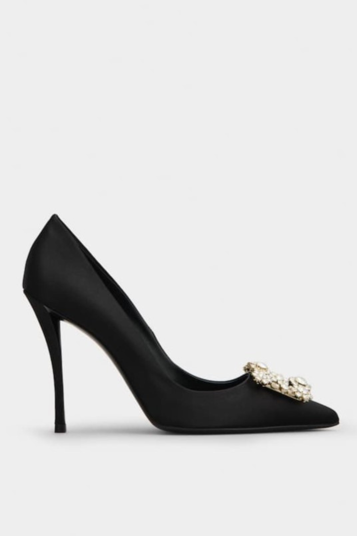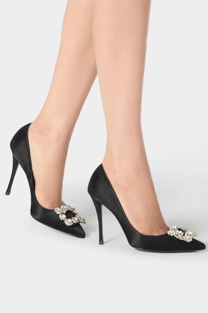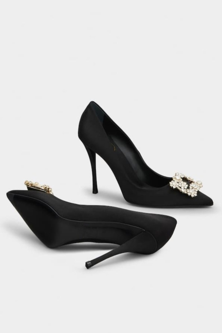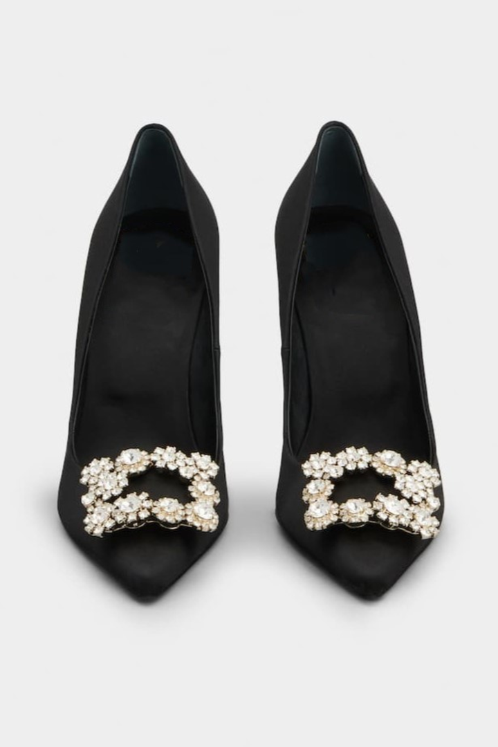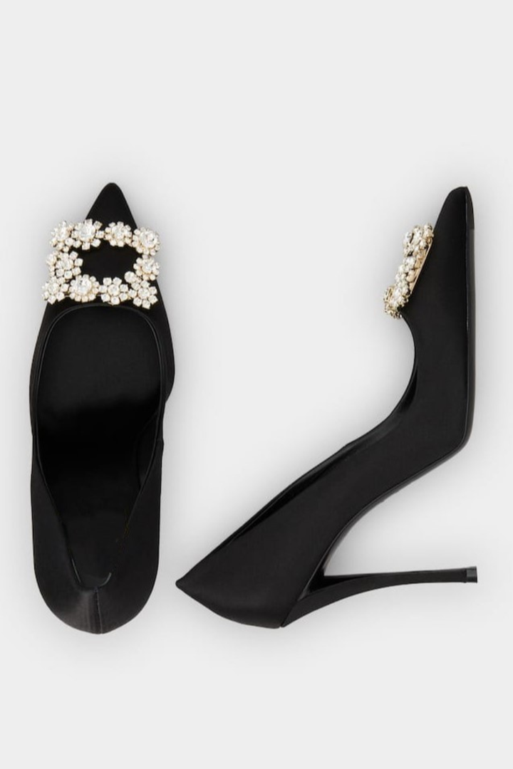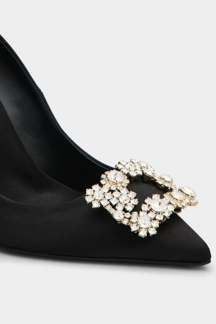 Jabez Rhinestone Buckle Satin Pumps - Black