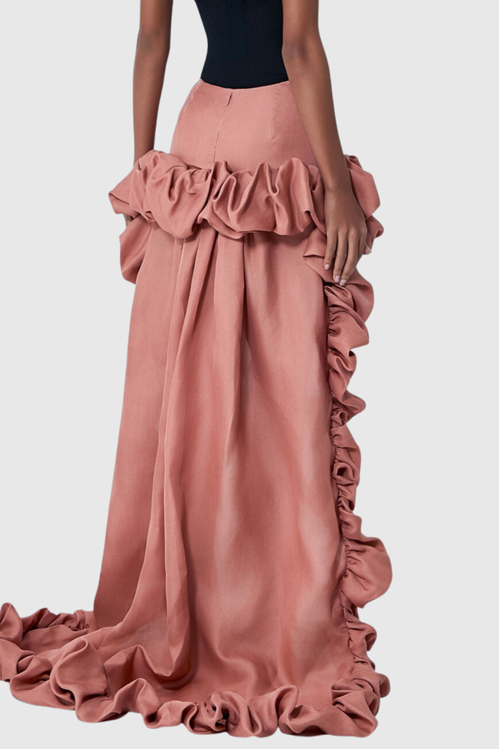The Janice Ruffle Skirt brings refined elegance to your wardrobe with its delicate ruffled detailing and graceful silhouette. Crafted for the modern woman who appreciates timeless style, this skirt effortlessly transitions from office to evening occasions. The layered ruffle design adds movement and dimension, while the thoughtful construction ensures a flattering fit. Perfect for pairing with tailored blouses or fitted tops, the Janice is an investment piece that elevates any ensemble with understated sophistication.