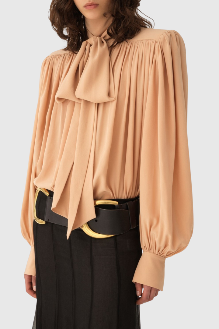 Introducing the Javan Bow Gathered Blouse, a sophisticated and elegant addition to your wardrobe. Crafted with exquisite attention to detail, this blouse features a beautiful gathered bow, adding a touch of luxurious style to any outfit. Elevate your look with the Javan Bow Gathered Blouse.