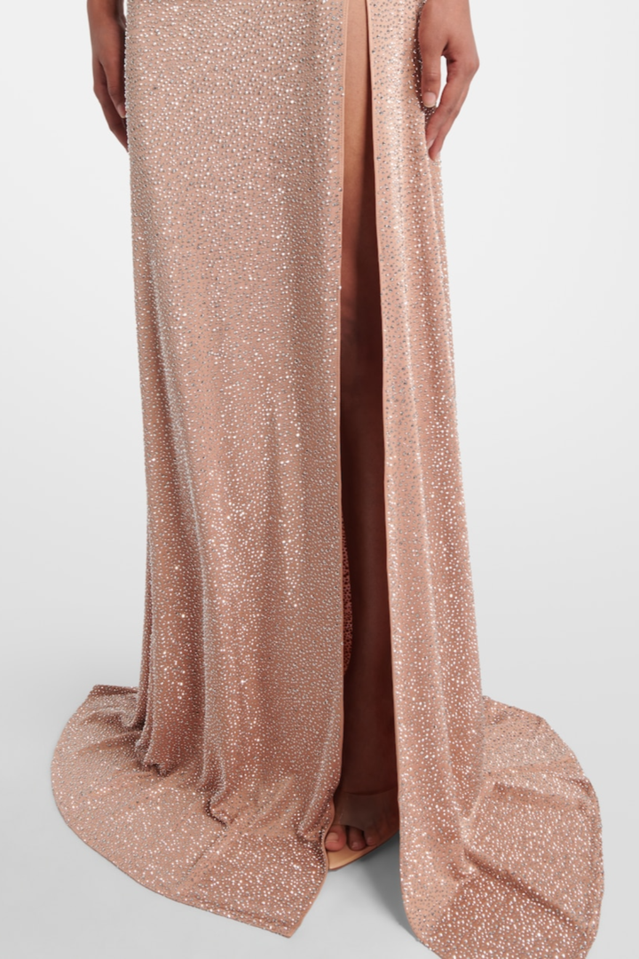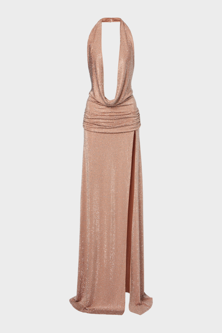 Jepha Halter Crystal Embellished Split Maxi Dress