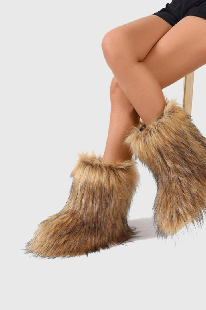 Jiyata Faux Fur Ankle Boots - Brown