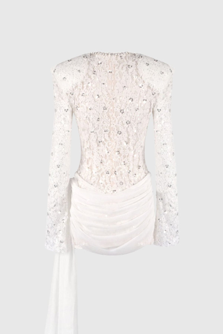 Jonella Sequin Embellished Lace Dreaped Mini Dress