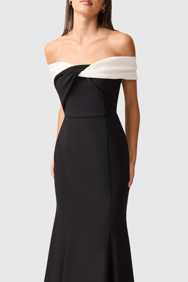 Elevate your evening wardrobe with the Josela Off Shoulder Knot Maxi Dress, a refined piece that seamlessly blends elegance with contemporary style. The graceful off-shoulder neckline draws attention upward, while the artfully tied knot detail at the bodice adds a touch of refined sophistication. Flowing effortlessly to the floor, this maxi dress creates a striking silhouette perfect for formal occasions, upscale dinners, or memorable celebrations. The draped fabric moves with poise, ensuring you feel as polished as you look.