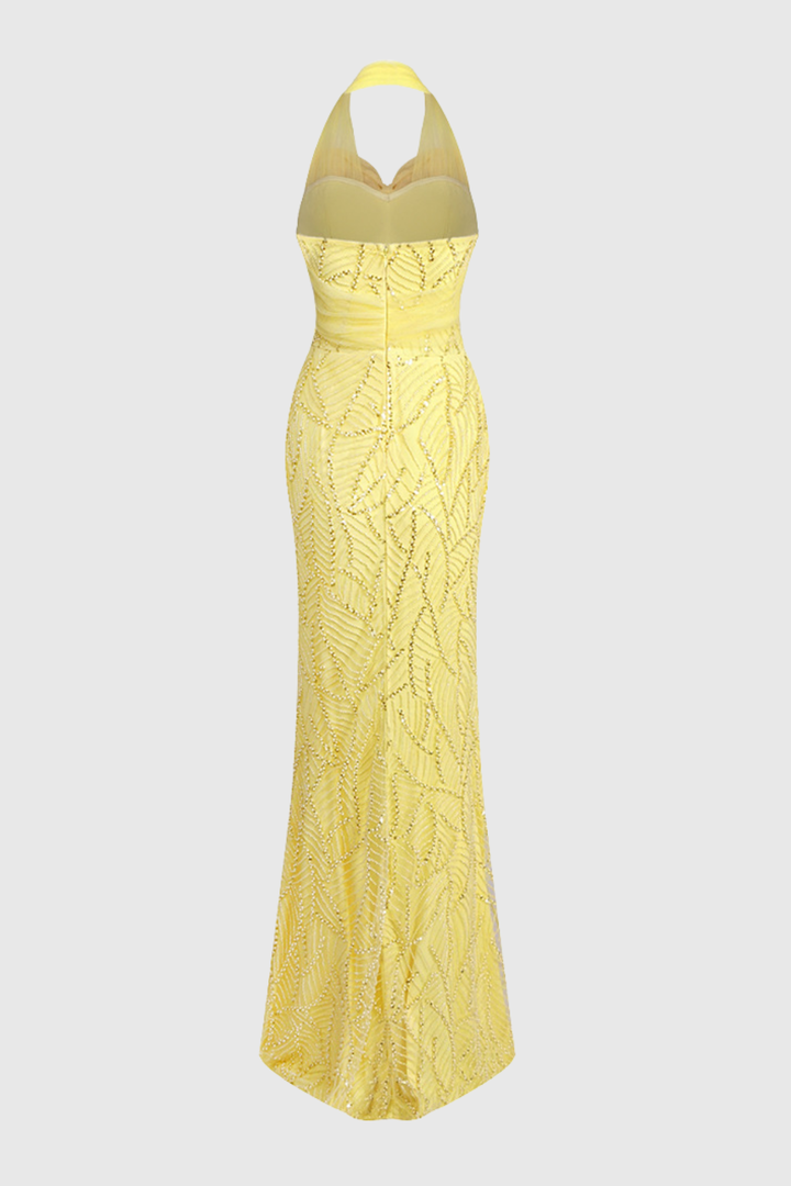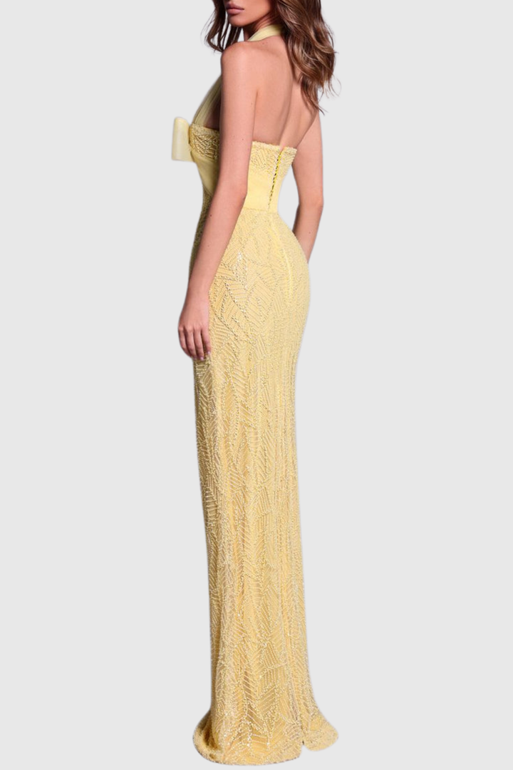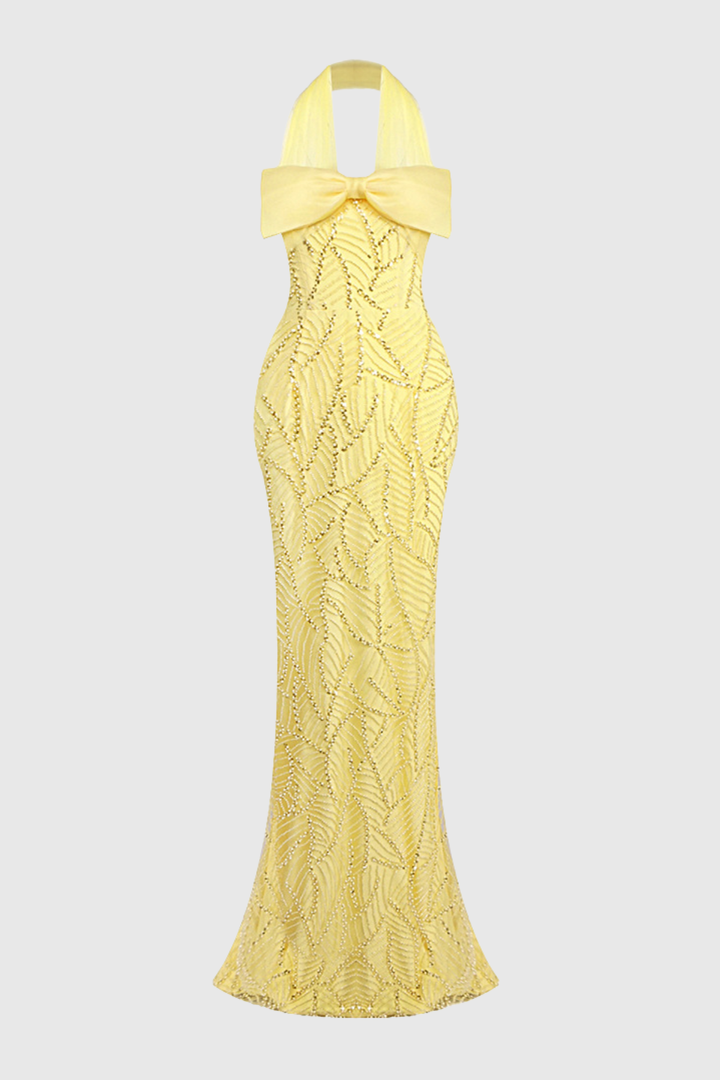 Juni Halter Bowknot Bead Embellished Maxi Dress