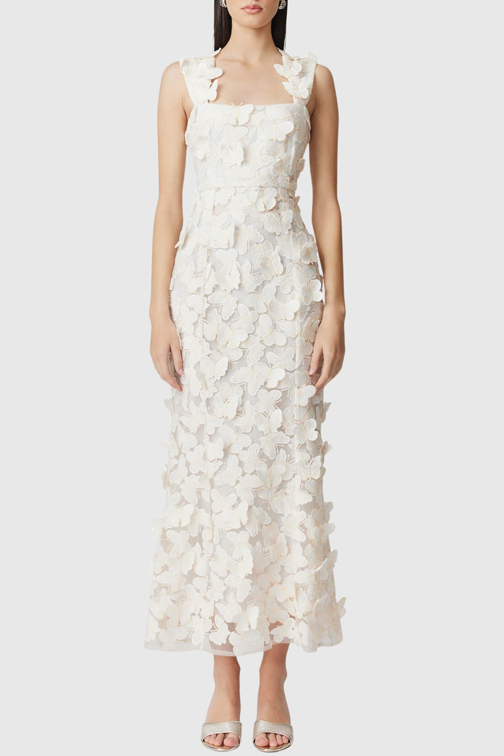 Elevate your wardrobe with the Kailee Butterfly Embroidered Midi Dress, a refined piece that seamlessly blends elegance with artistic detail. Delicate butterfly embroidery adorns the fabric, creating a captivating focal point that draws the eye. The midi length offers a timeless silhouette that flatters various body types while maintaining an air of sophistication. Perfect for garden parties, brunch gatherings, or elevated casual occasions, this dress transitions effortlessly from day to evening. The intricate embroidery work showcases exceptional craftsmanship, making it a standout addition to any discerning wardrobe.