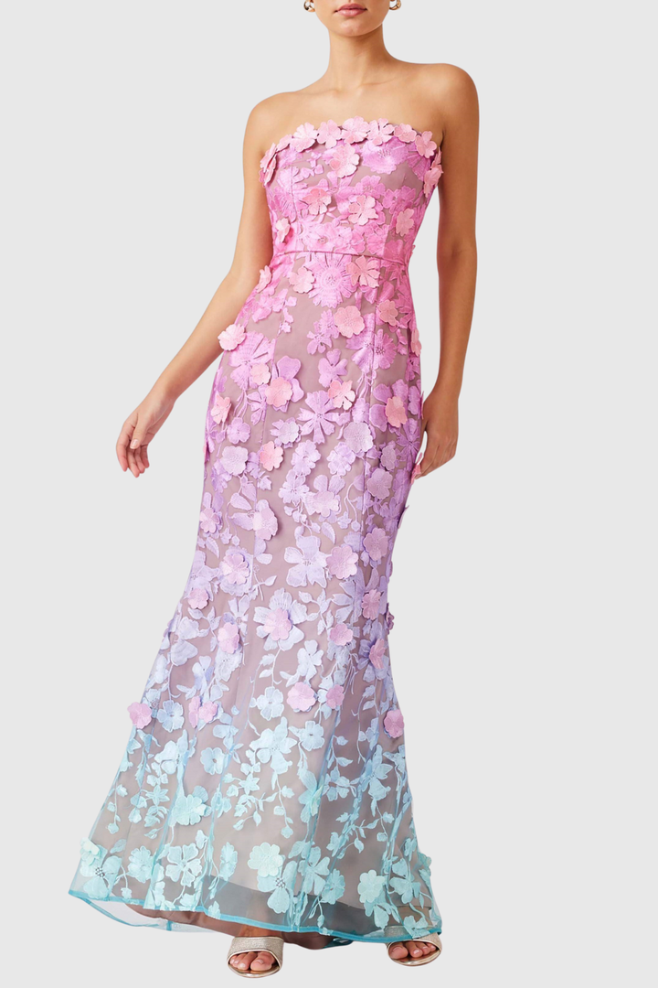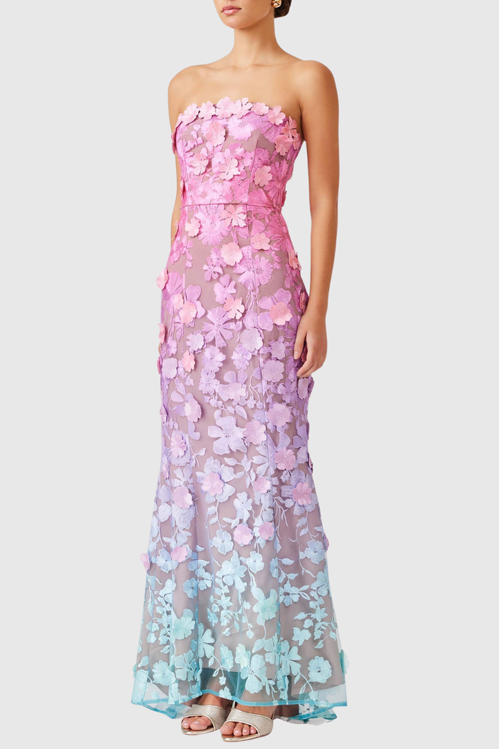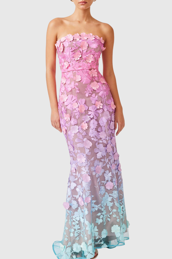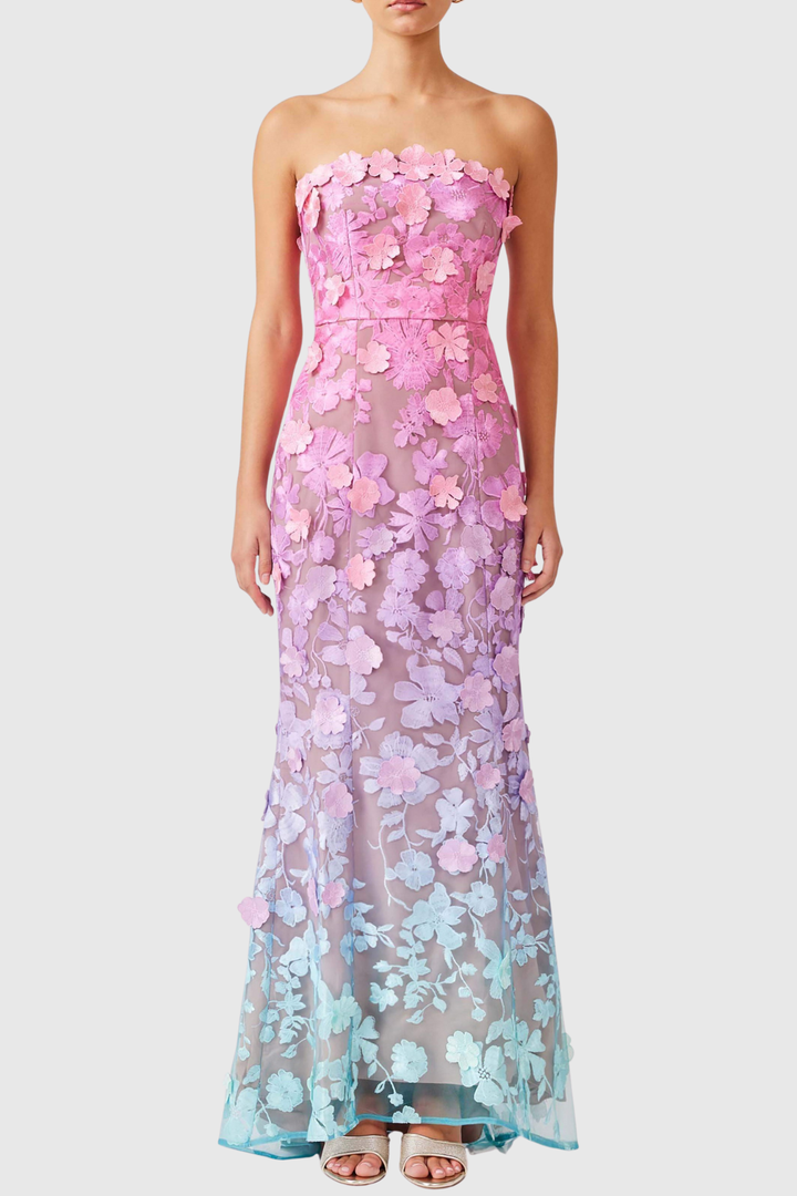 Katelyn Floral Embroidered Strapless Maxi Dress