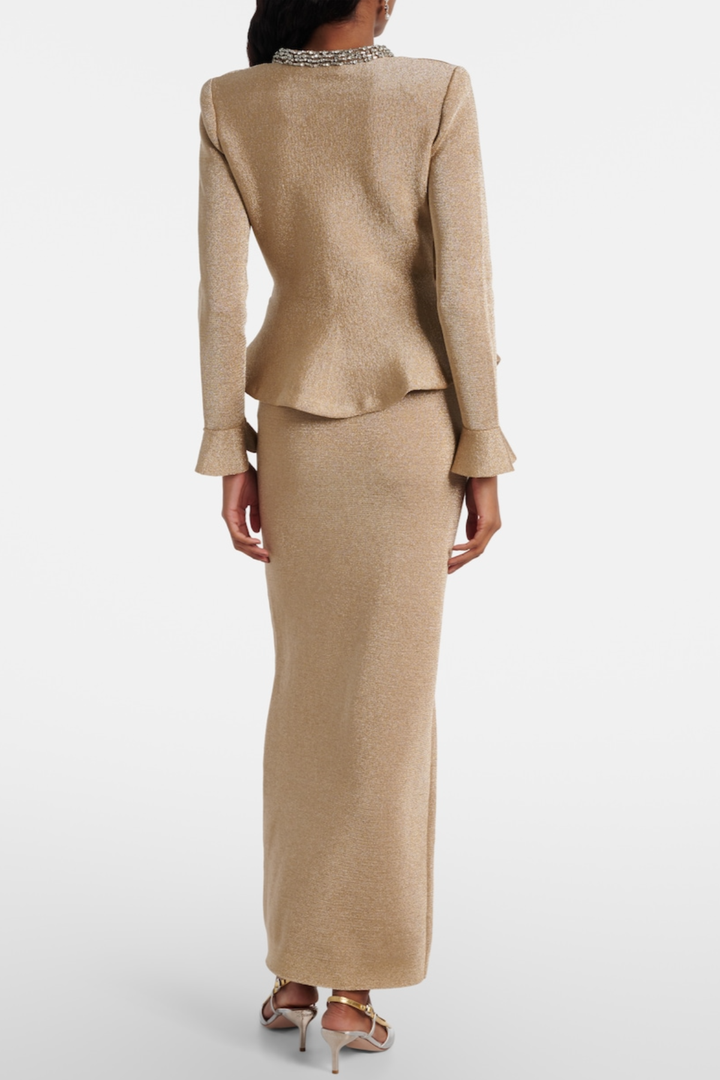 Elevate your evening wardrobe with the Katrina Crystal Embellished Knit Maxi Dress, a refined piece that seamlessly blends comfort with glamour. Crafted from luxuriously soft knit fabric, this floor-length silhouette features intricate crystal embellishments that catch the light with every movement, creating an understated yet captivating sparkle. The elegant drape and thoughtful construction ensure a flattering fit for any occasion, from formal dinners to upscale celebrations. Perfect for those who appreciate timeless sophistication with a touch of radiance.