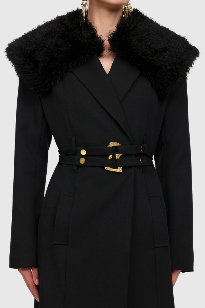 Elevate your winter wardrobe with the Kenna Faux Fur Belted Coat, a timeless piece that seamlessly blends luxury and practicality. Crafted from sumptuous faux fur, this coat delivers warmth without compromise on style. The cinched waist belt creates a flattering silhouette, while the rich texture adds instant sophistication to any ensemble. Perfect for special occasions or refined everyday wear, this statement coat transforms casual outfits into polished looks. Embrace effortless elegance with a piece designed for the discerning eye.