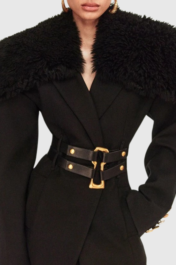 Elevate your winter wardrobe with the Kenna Faux Fur Belted Jacket, a timeless piece that seamlessly blends luxury and practicality. Crafted from sumptuous faux fur, this jacket delivers warmth without compromise on style. The cinched waist belt creates a flattering silhouette, while the rich texture adds dimension to any ensemble. Perfect for evening events or refined casual occasions, this jacket transforms ordinary outfits into sophisticated statements. Versatile enough to pair with dresses, jeans, or tailored trousers, it's an investment piece that transcends seasons and trends.