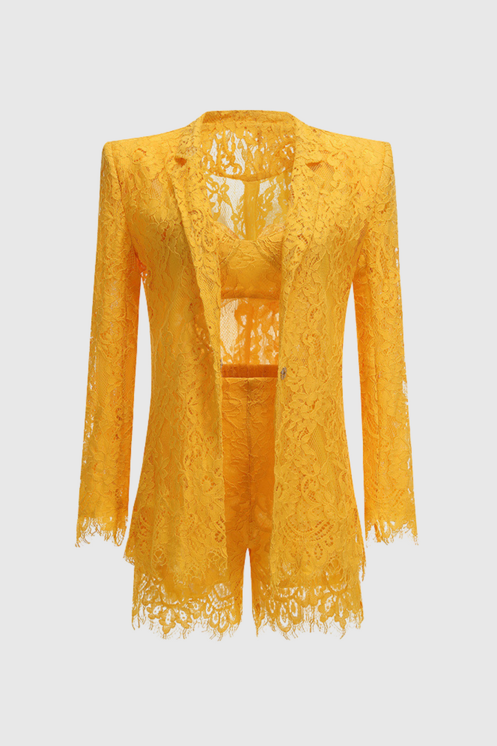 Elevate your elegance with the Kiffany Lace Three Piece Set, beautifully crafted to highlight delicate lace details and refined tailoring. This ensemble brings a harmonious blend of sophistication and comfort, perfect for special occasions or stylish everyday wear. Each piece is designed to complement your silhouette, offering a graceful and timeless look that speaks to your poise and confidence.