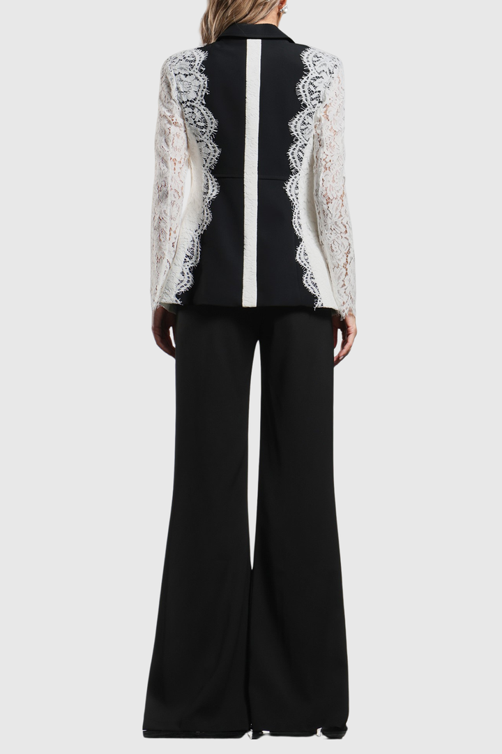 Elevate your ensemble with the Kottya Lace-trimmed Blazer, where classic tailoring meets delicate femininity. This blazer features refined lace accents that add subtle elegance to a structured silhouette, making it perfect for both professional settings and stylish evenings. Crafted to blend sophistication with comfort, it offers a polished look that enhances your confidence and grace.
