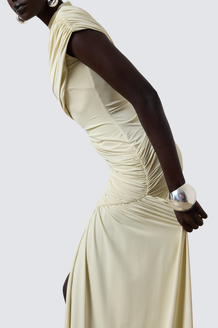 Elevate your wardrobe with the Laisha Sleeveless Draped Mini Dress, designed to combine elegance and modern style. Its fluid draping enhances your silhouette, while the sleeveless cut offers a refined yet effortless look. Perfect for evening occasions or upscale gatherings, this mini dress delivers sophistication with a flattering fit that moves gracefully with you.