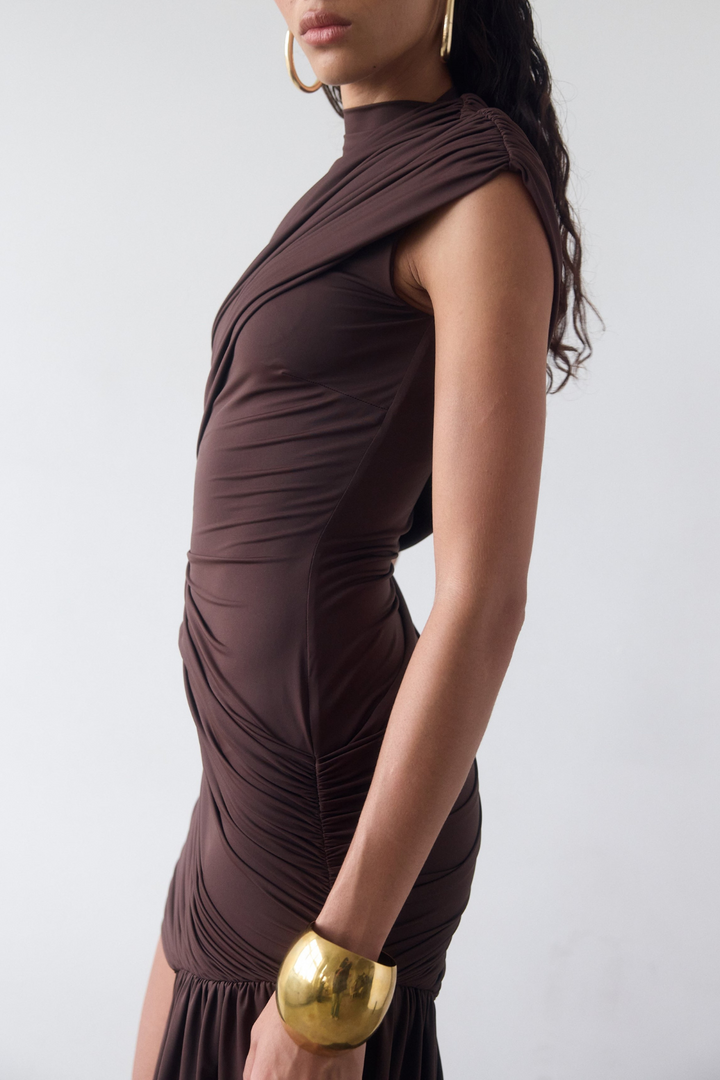 Laisha Sleeveless Draped Mini Dress - Brown