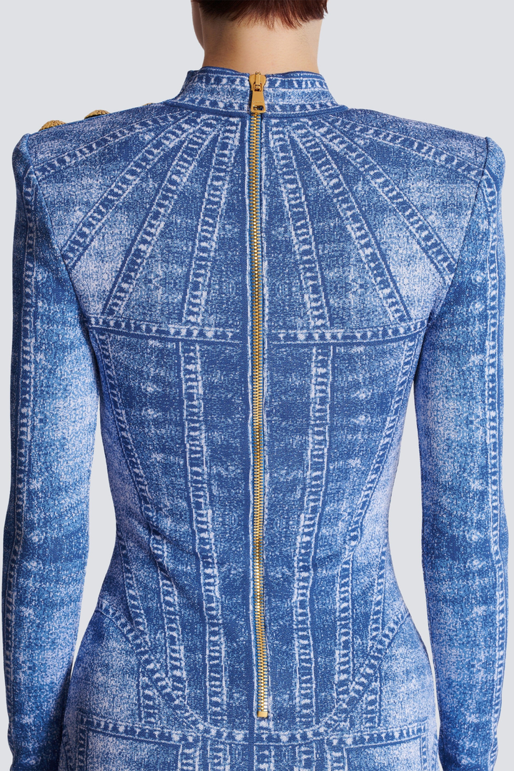 The Lanen Jacquard Denim-Effect Mini Dress combines timeless denim appeal with intricate jacquard texture for a refined yet modern look. Its tailored silhouette accentuates elegance while maintaining a youthful edge. Perfect for sophisticated occasions, this mini dress elevates everyday style with subtle depth and structure.