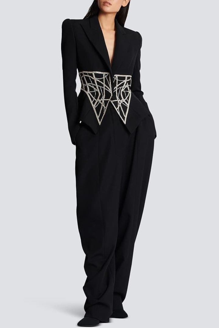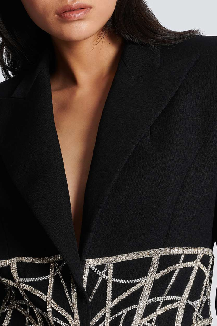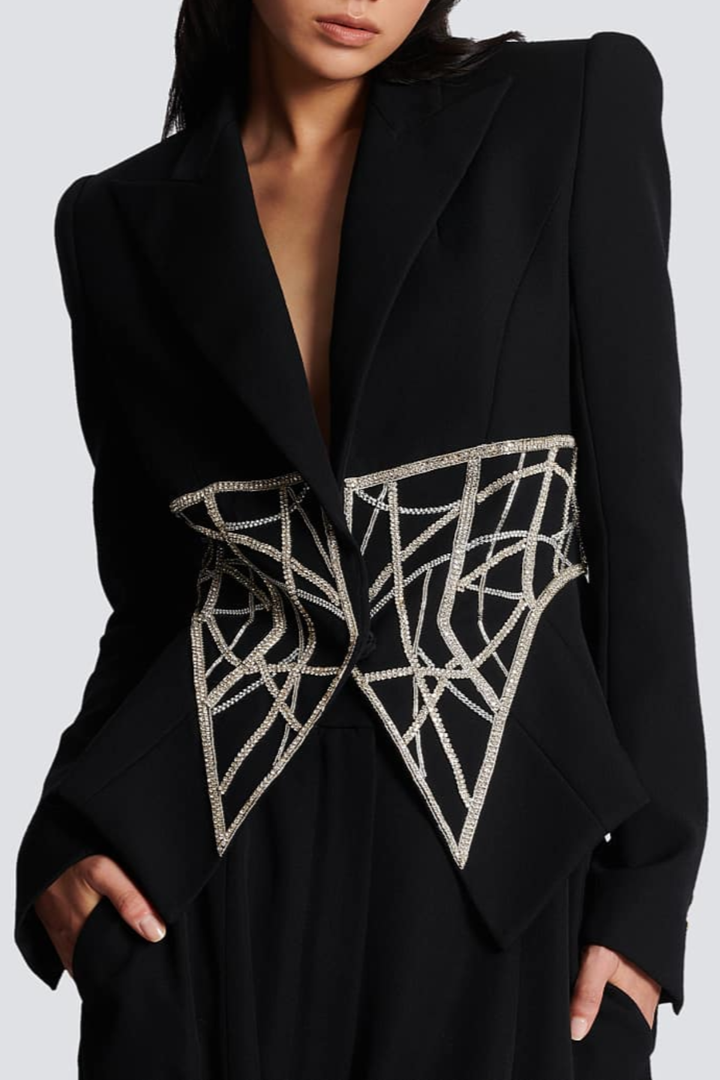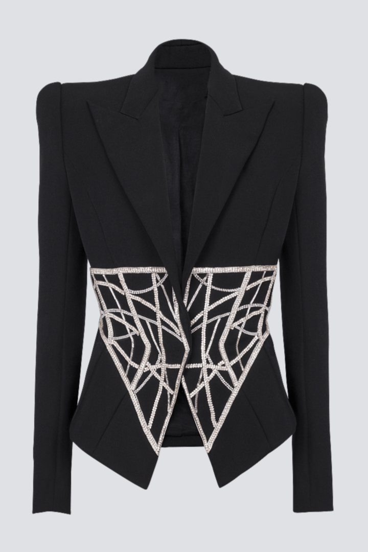 Elevate your wardrobe with the Leonia Crystal Embellished Blazer, a statement piece that seamlessly blends refined elegance with contemporary style. Crafted with meticulous attention to detail, this blazer features exquisite crystal embellishments that catch the light beautifully, adding a touch of glamour to any ensemble. The tailored silhouette ensures a polished fit, making it perfect for upscale events, professional settings, or evening occasions. Pair it with evening wear for a show-stopping look, or layer it over basics for sophisticated everyday styling. A versatile investment piece that transforms any outfit into something extraordinary.