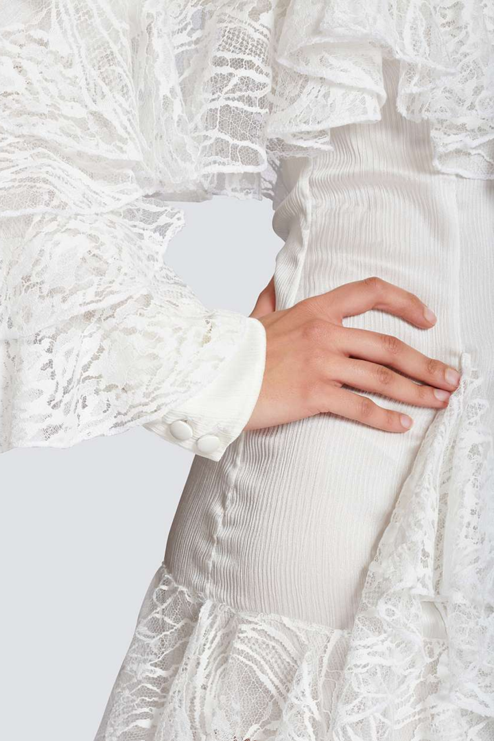 Embrace effortless elegance with this captivating mini dress, where delicate lace meets playful ruffles for a look that balances refinement with modern flair. The intricate lace detailing creates a romantic foundation, while strategically placed ruffles add dimension and movement. Perfect for evening events, date nights, or upscale casual occasions, this piece transitions seamlessly from day to night. The mini silhouette flatters while maintaining an air of understated sophistication, making it an essential addition to any discerning wardrobe.