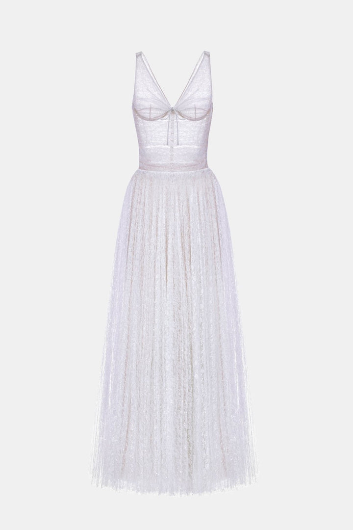 Elevate your wardrobe with the Lorya Mesh Pleated Maxi Dress, a blend of elegance and effortless style. Crafted with delicate pleated mesh, this maxi dress flows gracefully, creating a flattering silhouette that moves beautifully with every step. Its refined design makes it perfect for formal events or sophisticated evenings out, offering both comfort and timeless charm.