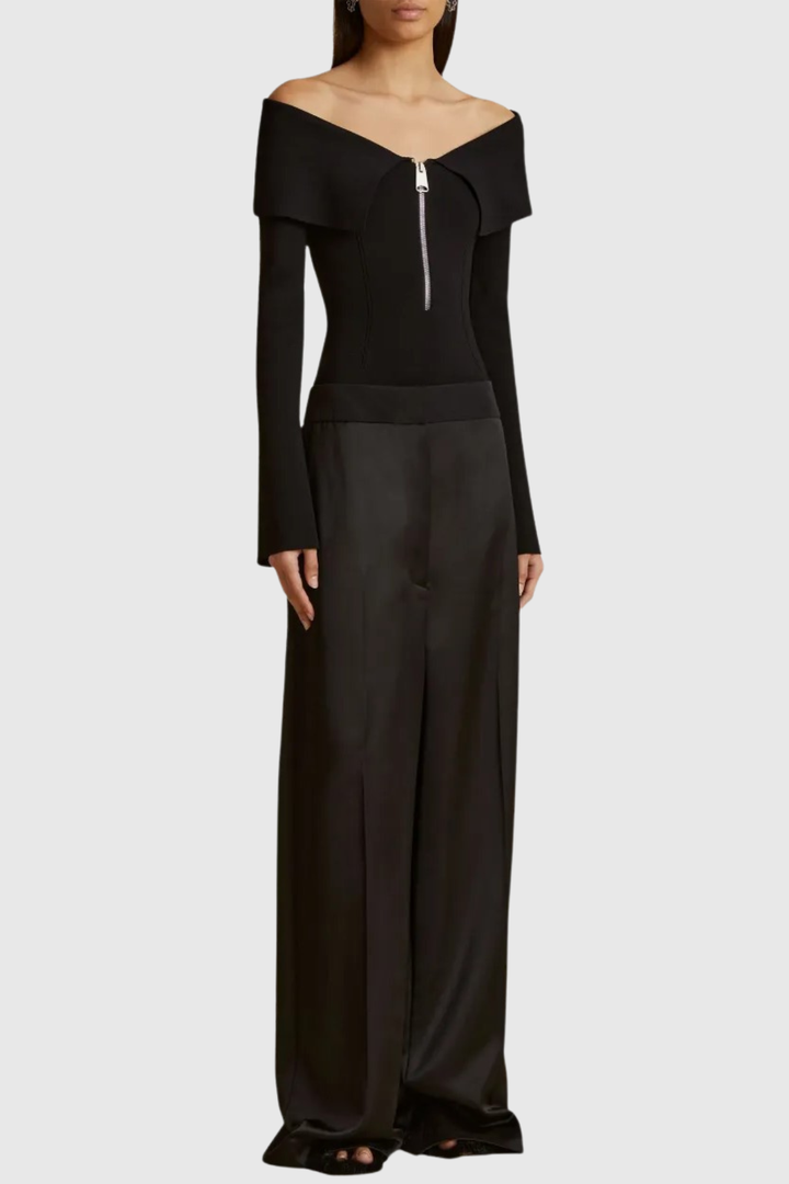 The Lulan Off Shoulder Knit Top effortlessly combines contemporary elegance with timeless appeal. This refined piece features a graceful off-shoulder neckline that frames the collarbone beautifully, while the soft knit fabric drapes with understated sophistication. Perfect for transitional seasons, it pairs seamlessly with tailored trousers, flowing skirts, or denim for versatile styling. The relaxed yet polished silhouette makes it an essential addition to any discerning wardrobe, whether dressed up for evening occasions or down for casual sophistication.