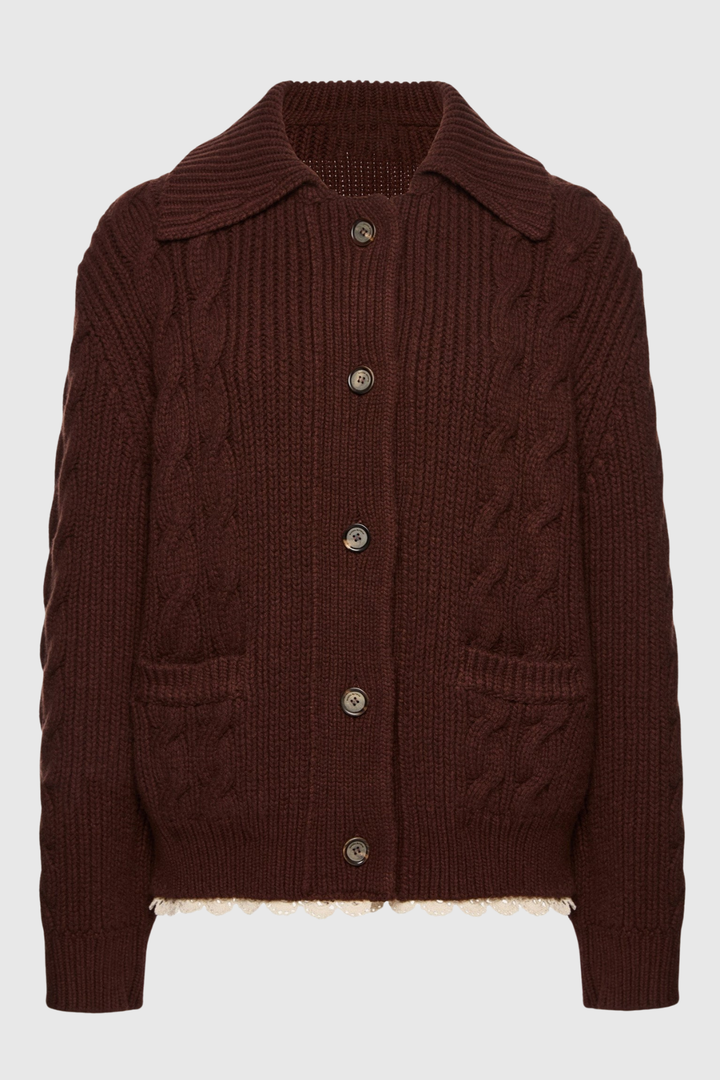 Elevate your wardrobe with the Lytar Lace-trimmed Knit Cardigan, where refined elegance meets everyday comfort. This sophisticated piece features delicate lace detailing along the edges, adding a touch of femininity and grace to any ensemble. Crafted from quality knit fabric, it drapes beautifully while providing warmth and breathability. Perfect for layering over dresses or pairing with your favorite basics, this cardigan transitions seamlessly from office to evening occasions. A timeless investment piece that embodies understated luxury and versatile style.
