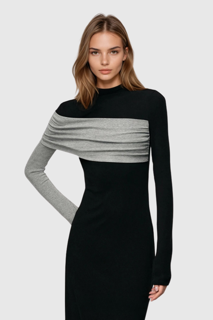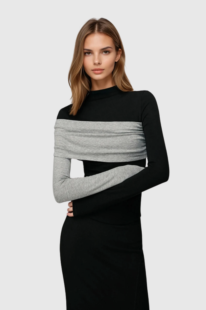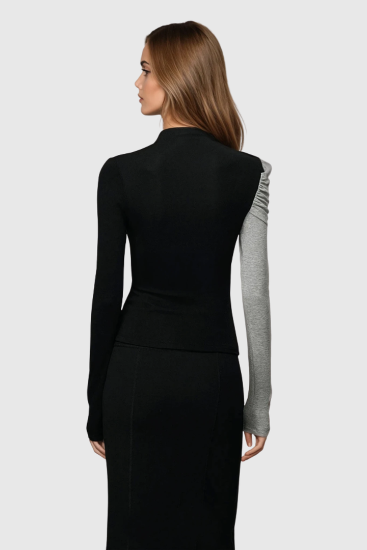 The Marcel Asymmetric Contrast Top presents a refined approach to contemporary styling. Its asymmetrical silhouette creates visual intrigue, while strategic color blocking adds dimension and modern sophistication. The contrasting elements draw the eye and elevate any ensemble, making it equally suited for polished office settings or elevated casual occasions. Crafted with attention to detail, this piece serves as a versatile foundation for building distinctive, fashion-forward looks that reflect discerning taste.