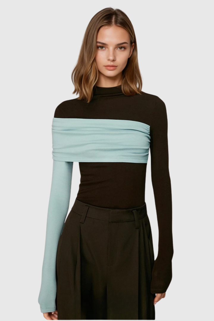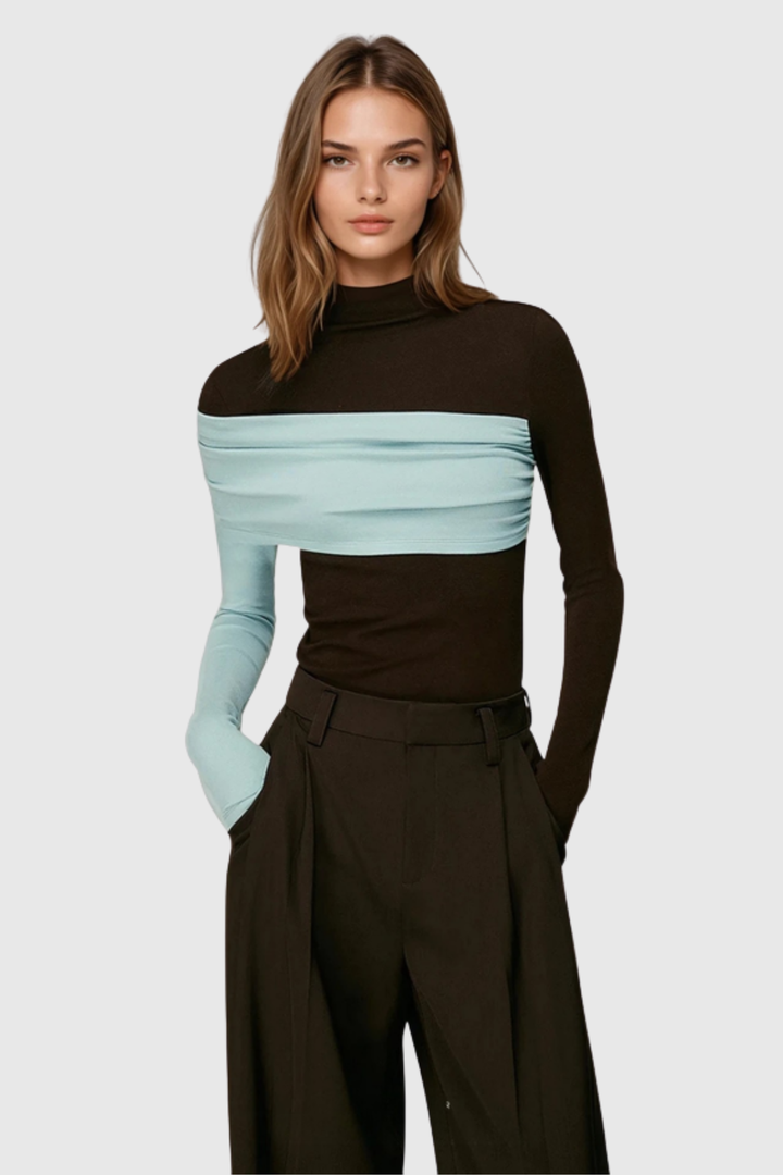 The Marcel Asymmetric Contrast Top presents a refined approach to contemporary styling. Its asymmetrical silhouette creates visual intrigue, while strategic color blocking adds dimension and modern sophistication. The contrasting elements draw the eye and elevate any ensemble, making it equally suited for polished office settings or elevated casual occasions. Crafted with attention to detail, this piece serves as a versatile foundation for building distinctive, fashion-forward looks that reflect discerning taste.