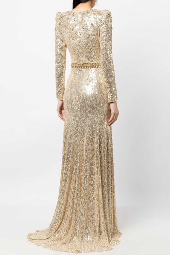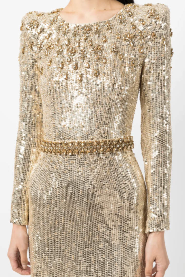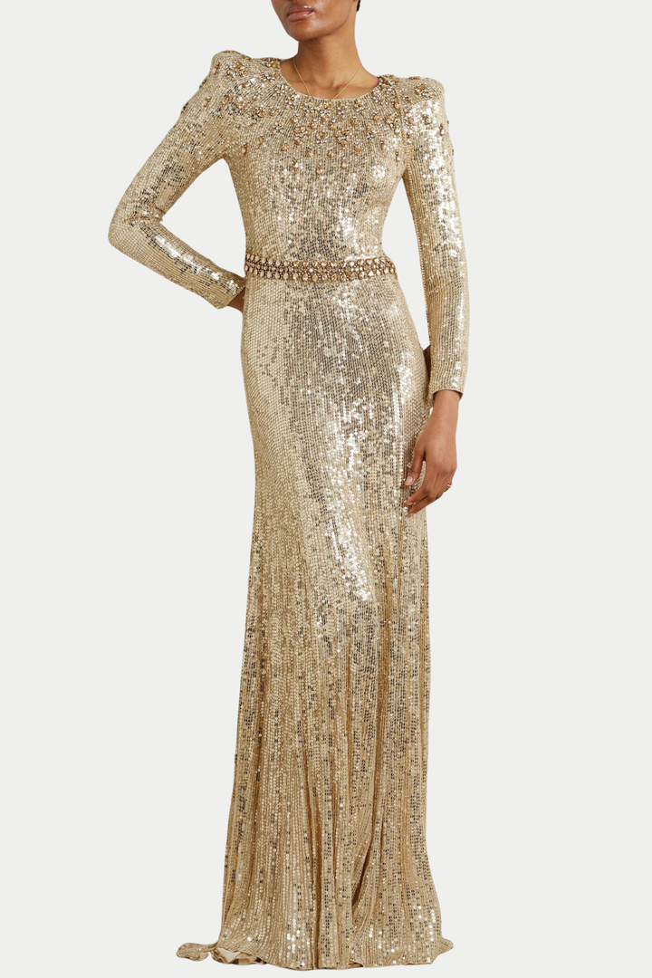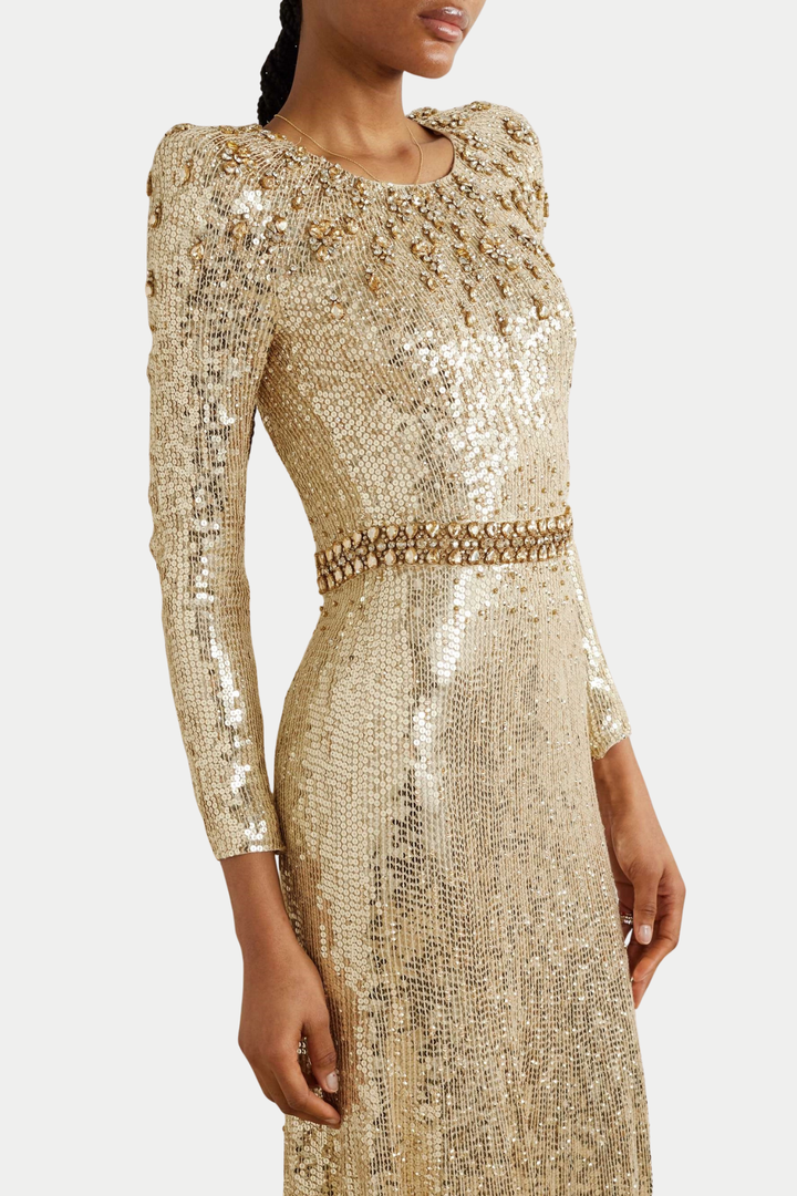 Maret Sequin Embellished Maxi Dress - Gold