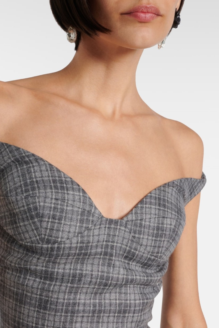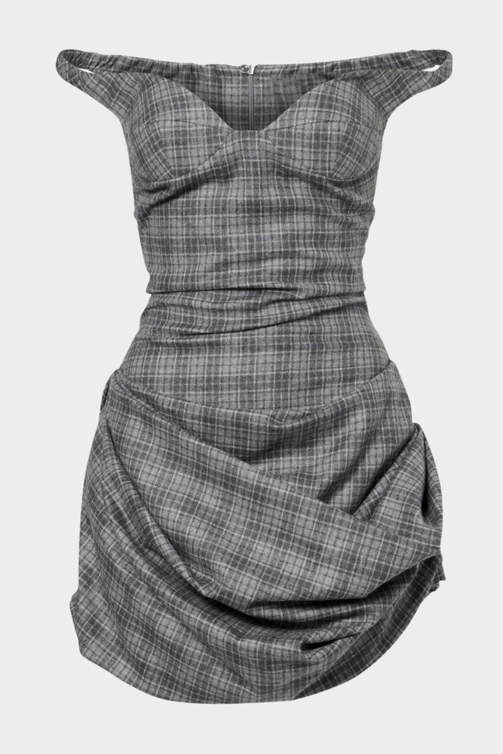 Marisa Off Shoulder Plaid Ruched Mini Dress