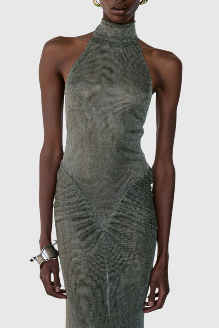Elevate your evening wardrobe with the Mariso Halter Ruched Maxi Dress, a timeless piece that seamlessly blends elegance with contemporary style. The flattering halter neckline frames the shoulders beautifully, while strategic ruching through the bodice creates a sculpted silhouette that enhances your natural curves. Crafted for refined occasions, this floor-length maxi dress drapes with graceful movement, offering both comfort and confidence. Perfect for galas, formal dinners, or upscale events, the Mariso delivers understated luxury with every wear.