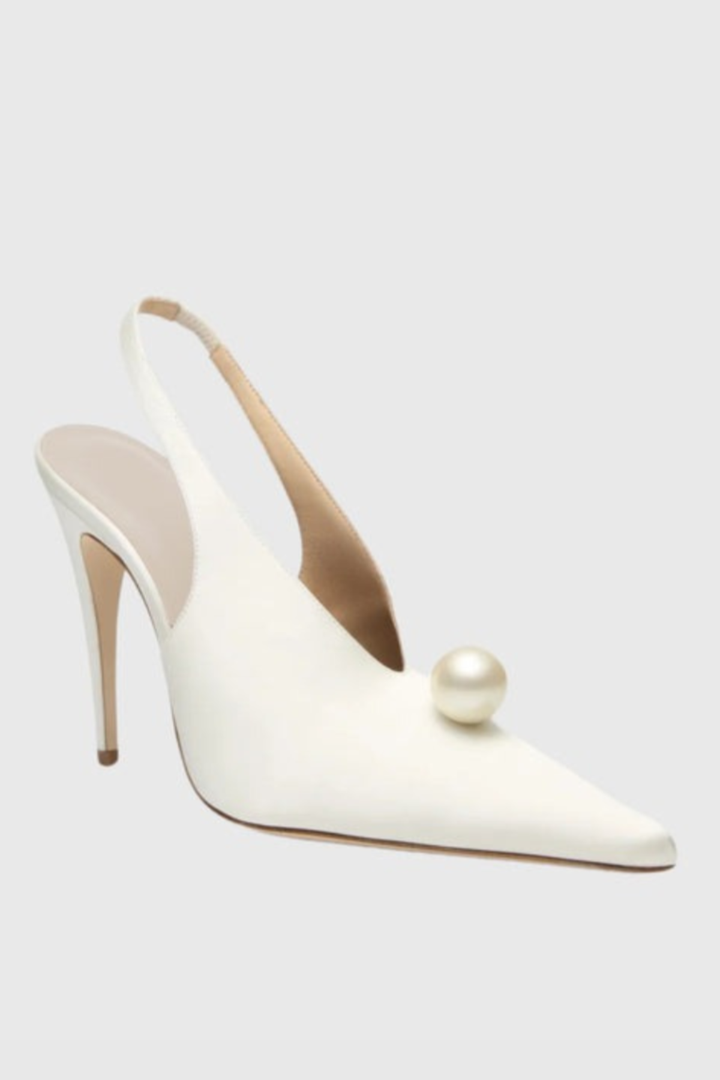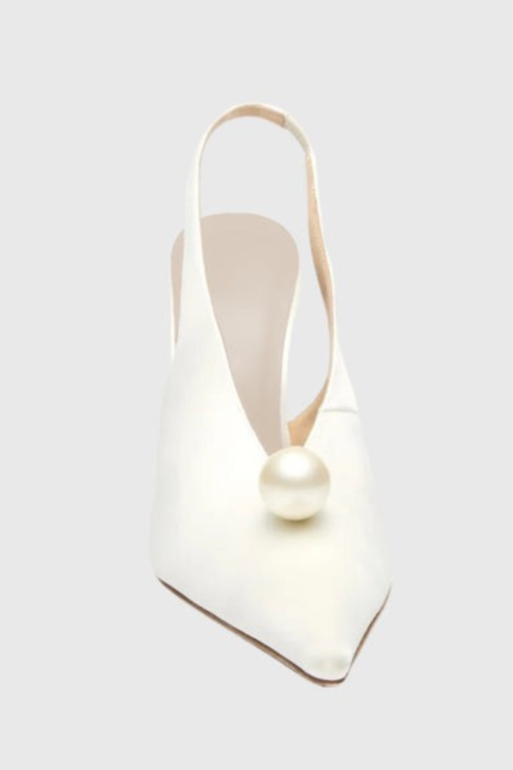 Masozi Pearl Satin Slingback Pumps - White