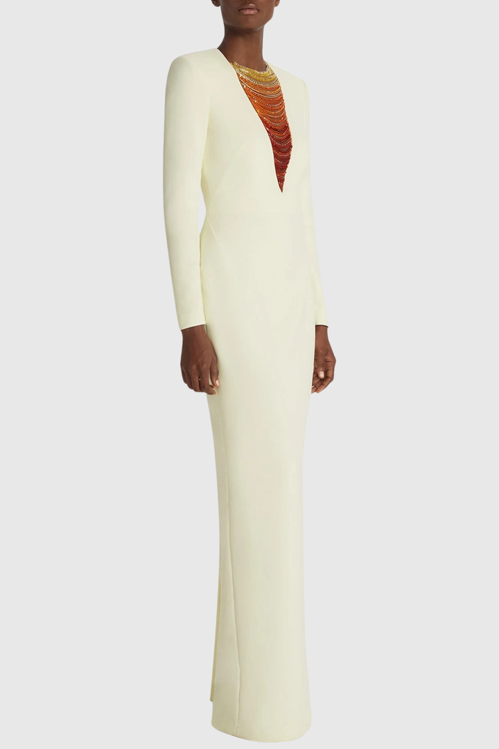 Elevate your evening wardrobe with this stunning maxi dress, where artisanal craftsmanship meets contemporary elegance. The Mawae features a captivating gradient design that transitions seamlessly across the fabric, complemented by intricate bead embellishments that catch the light with every movement. Tailored for a refined silhouette, this floor-length piece exudes timeless sophistication, making it an ideal choice for galas, formal celebrations, or upscale occasions. The luxurious draping and meticulous beadwork create an unforgettable impression that transcends seasonal trends.