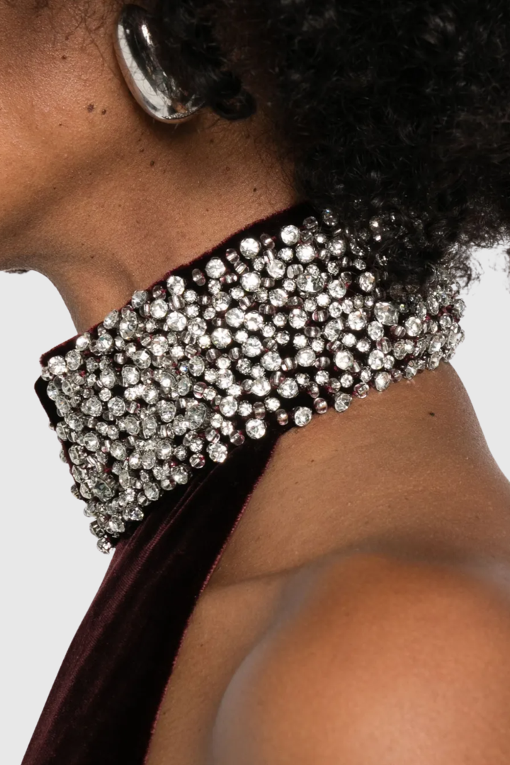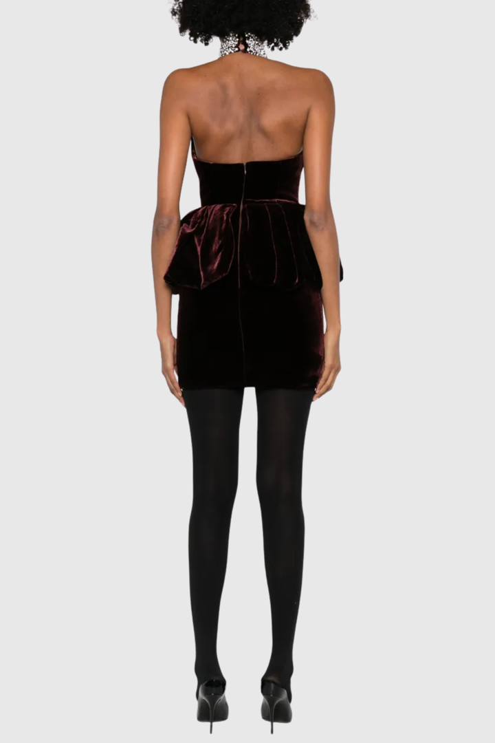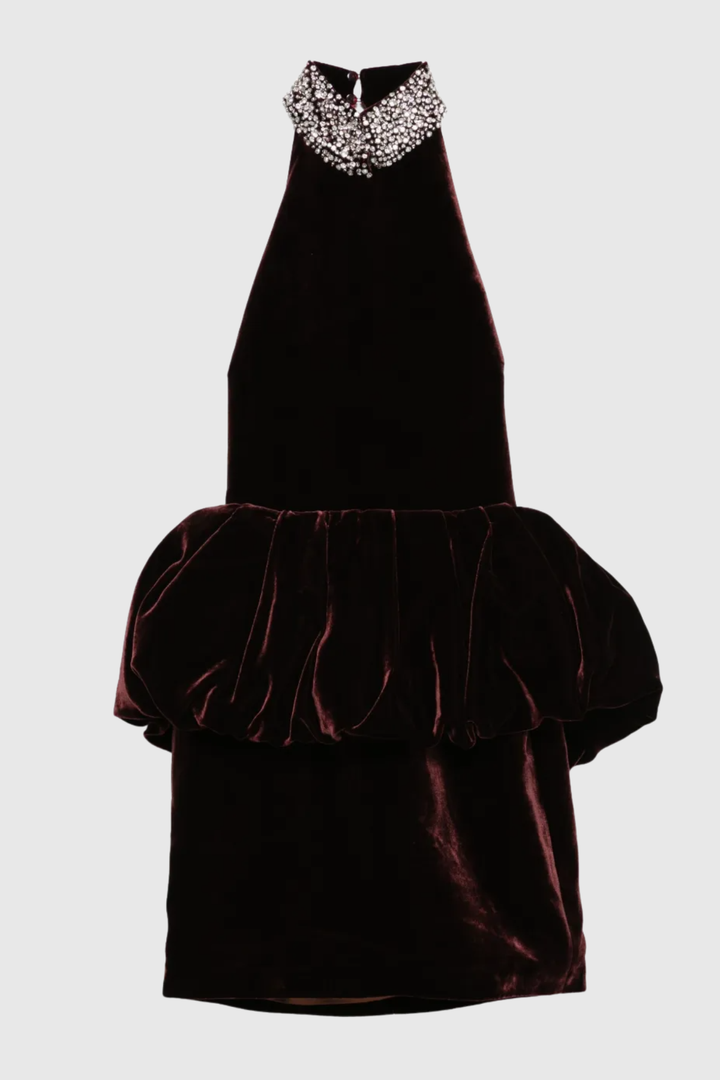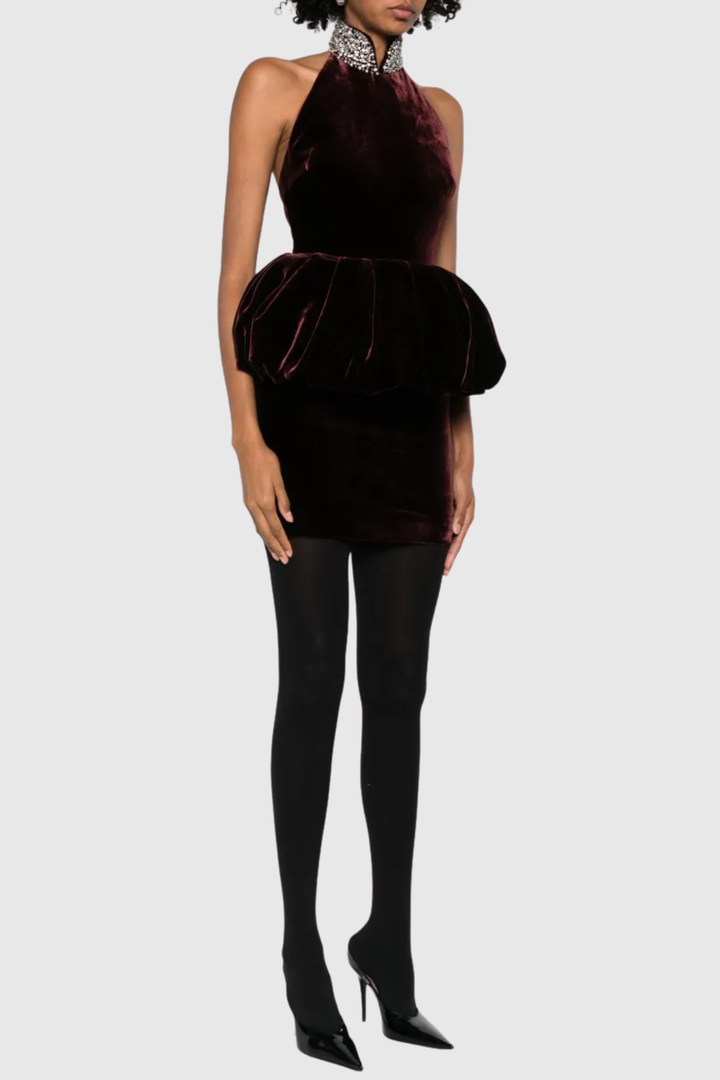 Mayuri Crystal Velvet Peplum-waist Mini Dress